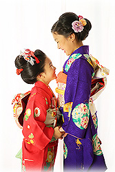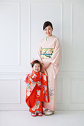 3歳のお嬢様に合わせて4~6歳お姉様もご一緒に着物をお召しになると素敵です。