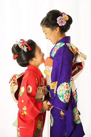 七五三をお迎えになる7歳の妹様に合わせて、10歳のお姉様もご一緒に着物をお召しになられました。