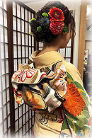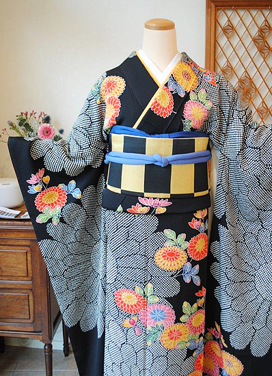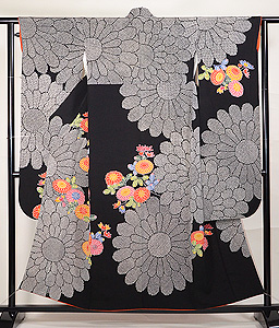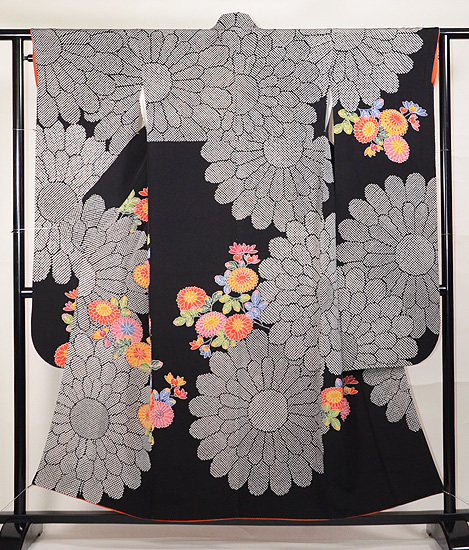 黒地に鮮やかに咲いた菊の花が、シックでおしゃれな印象を感じさせます。