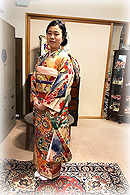 京紅型ならではの独特の色味は纏うほどに深みを感じ、縮緬地の持つ温もりを感じて頂けます。