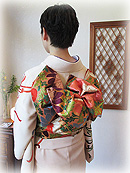 「花扇」という各種の花枝で扇が形作られた伝統的な文様は「末広がりに幸せになりますように」との意味に通じ、おめでたい席にぴったりです。