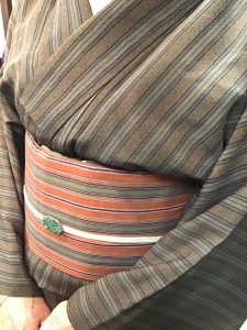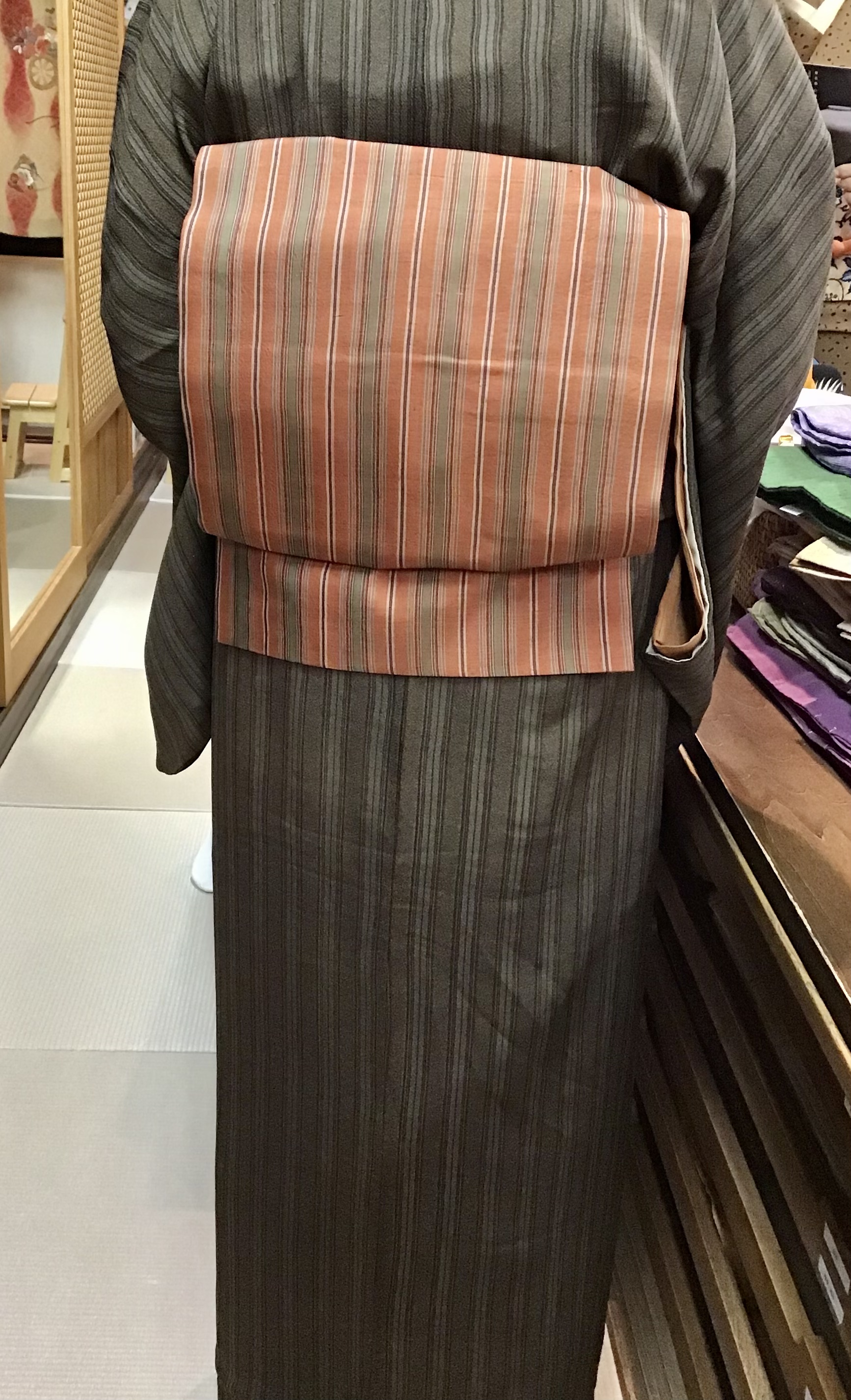縮緬の縞にカピタンの縞を重ねた着こなしです。