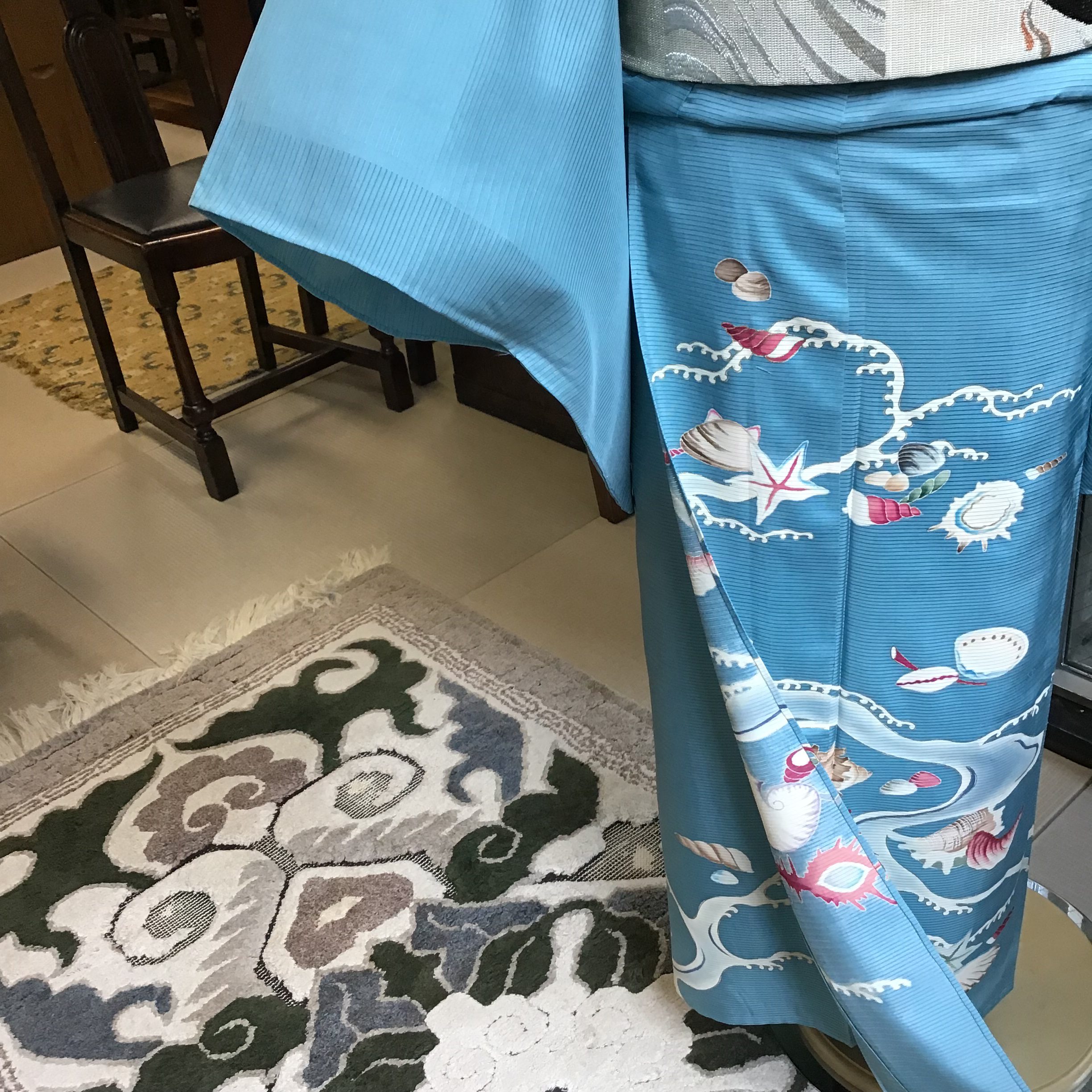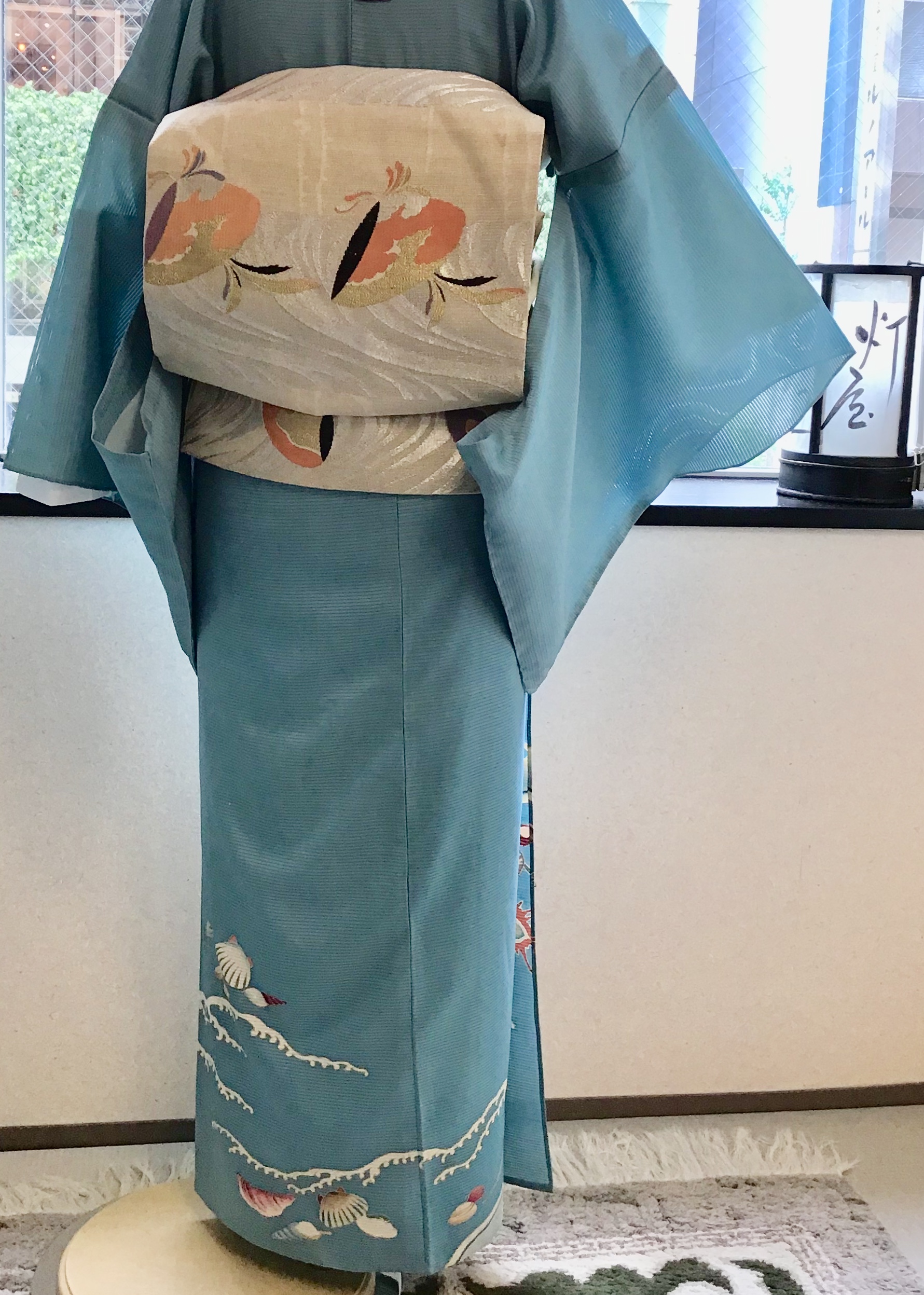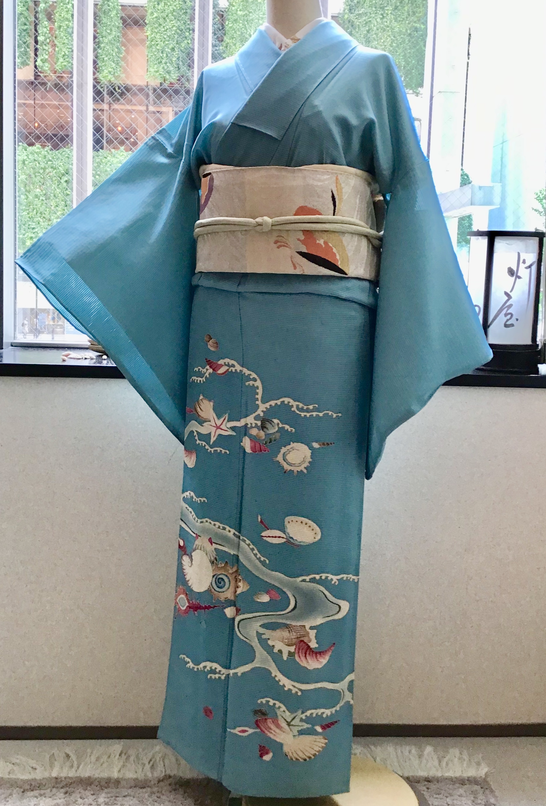 帯にもまた軽やかな貝の柄袋帯を合わせてみました。