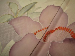 あしらいの刺繍がさりげなく、描かれた図柄に立体感を出しています。