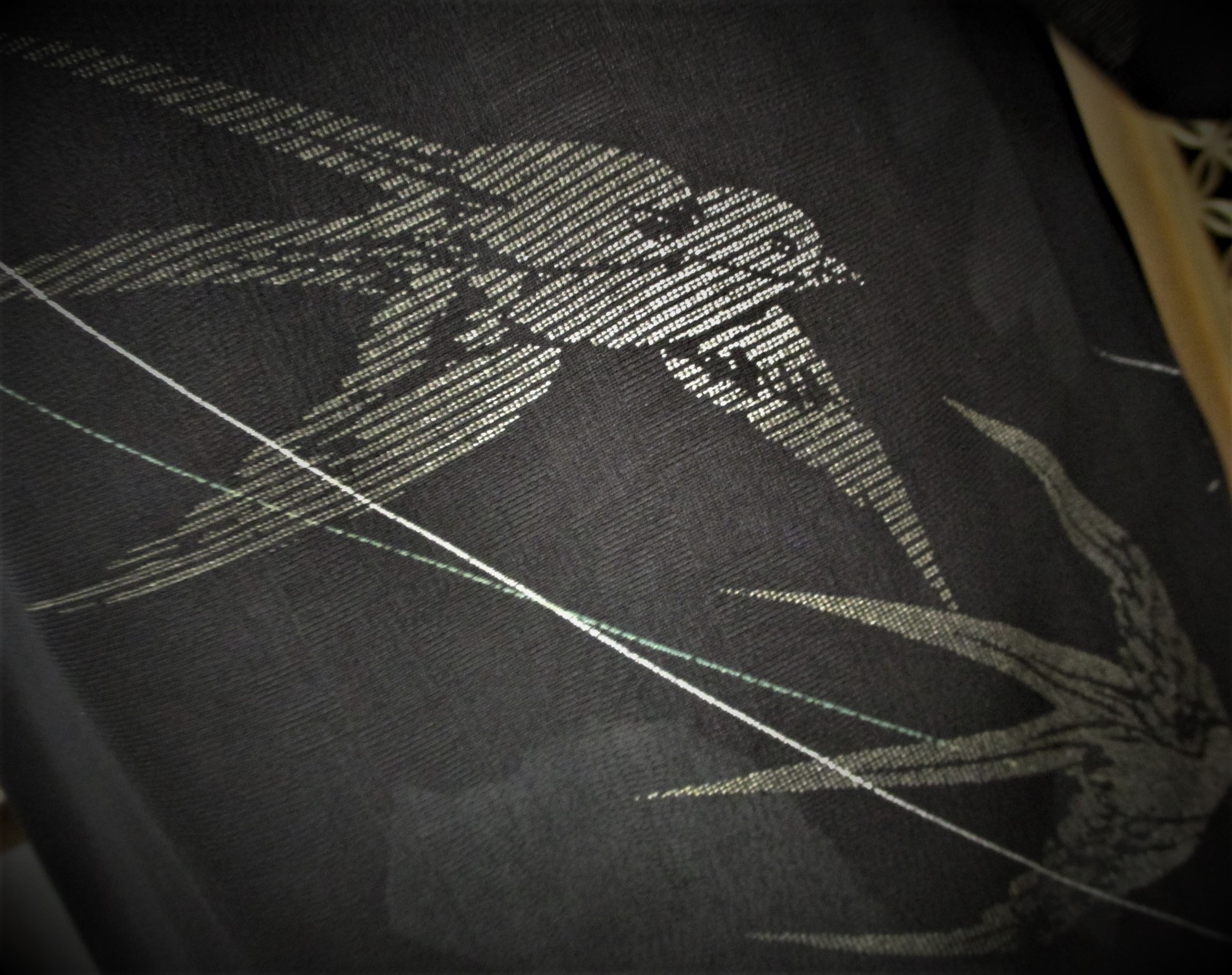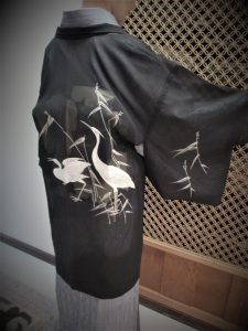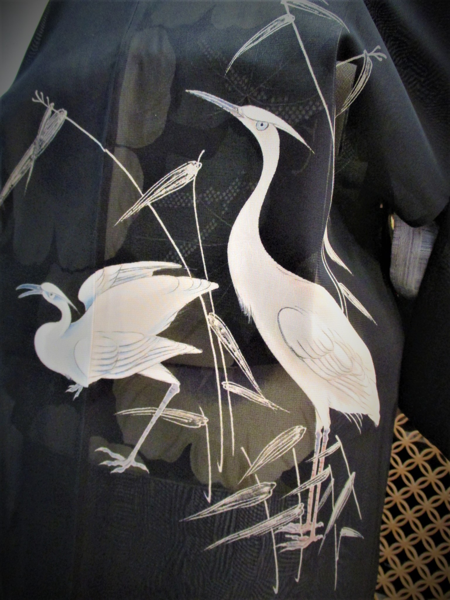 なめらかな透け感のある布に、それぞれ白鷺と、ツバメがあらわされています。