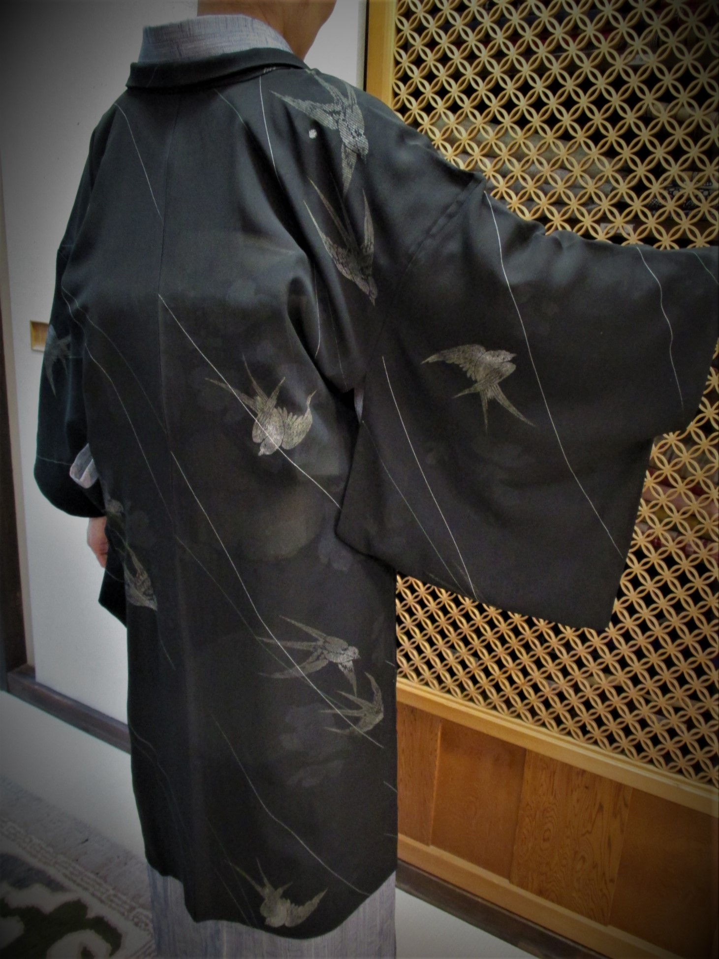 ツバメの黒地錦紗単衣羽織 80,000円+税