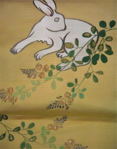 萩に白兎の刺繍名古屋帯(帯19-5-17) 120,000円+税