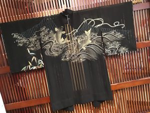 鯉の黒地紗羽織  140,000円+税     裄1尺7寸7分(約67㎝)    身丈2尺5寸(約94、7㎝)