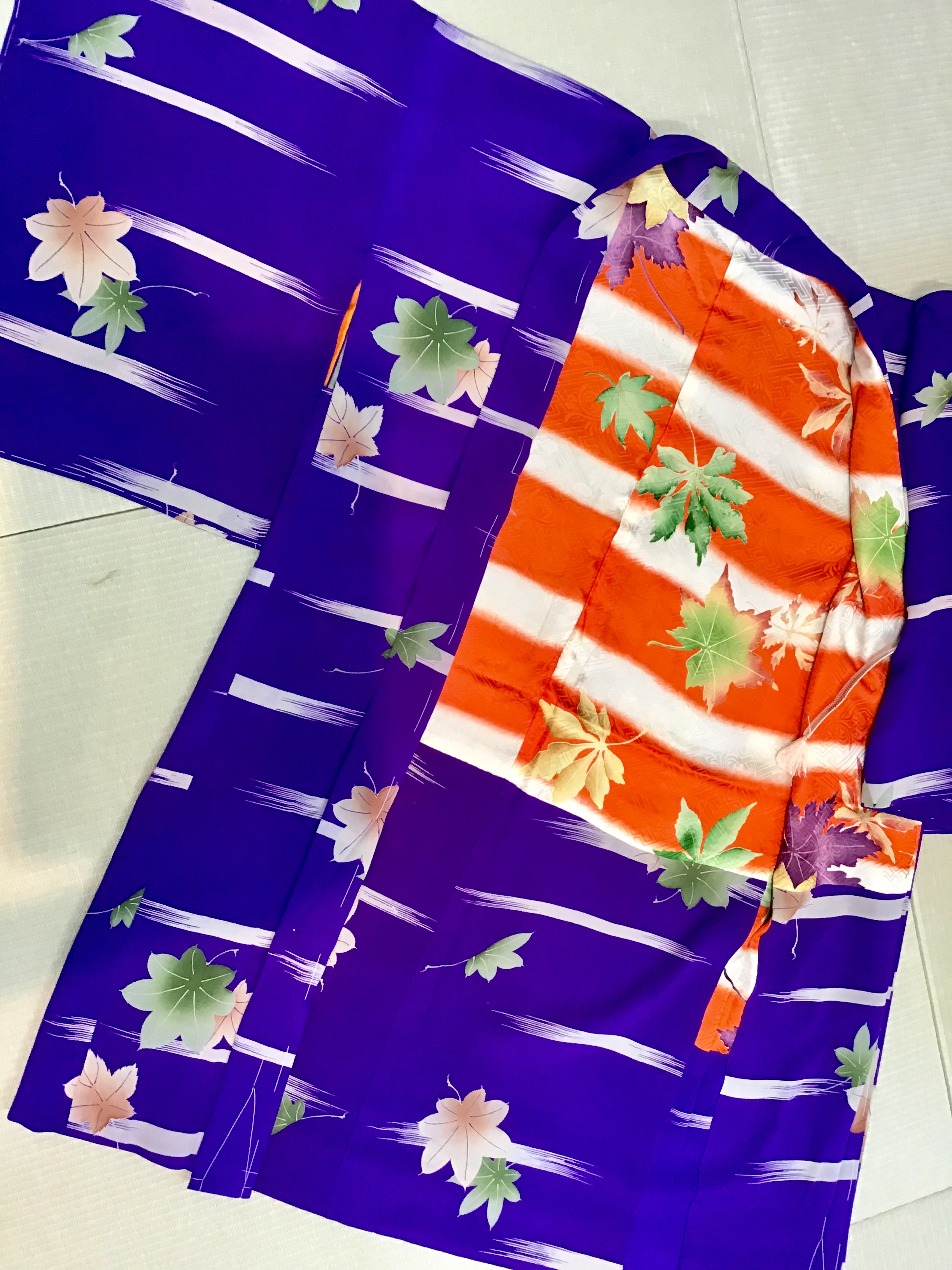 紫地散り紅葉の羽織 (仕立て直し) 100000円+税 着物18-10-14 身丈:2尺6寸(約98.8cm)
