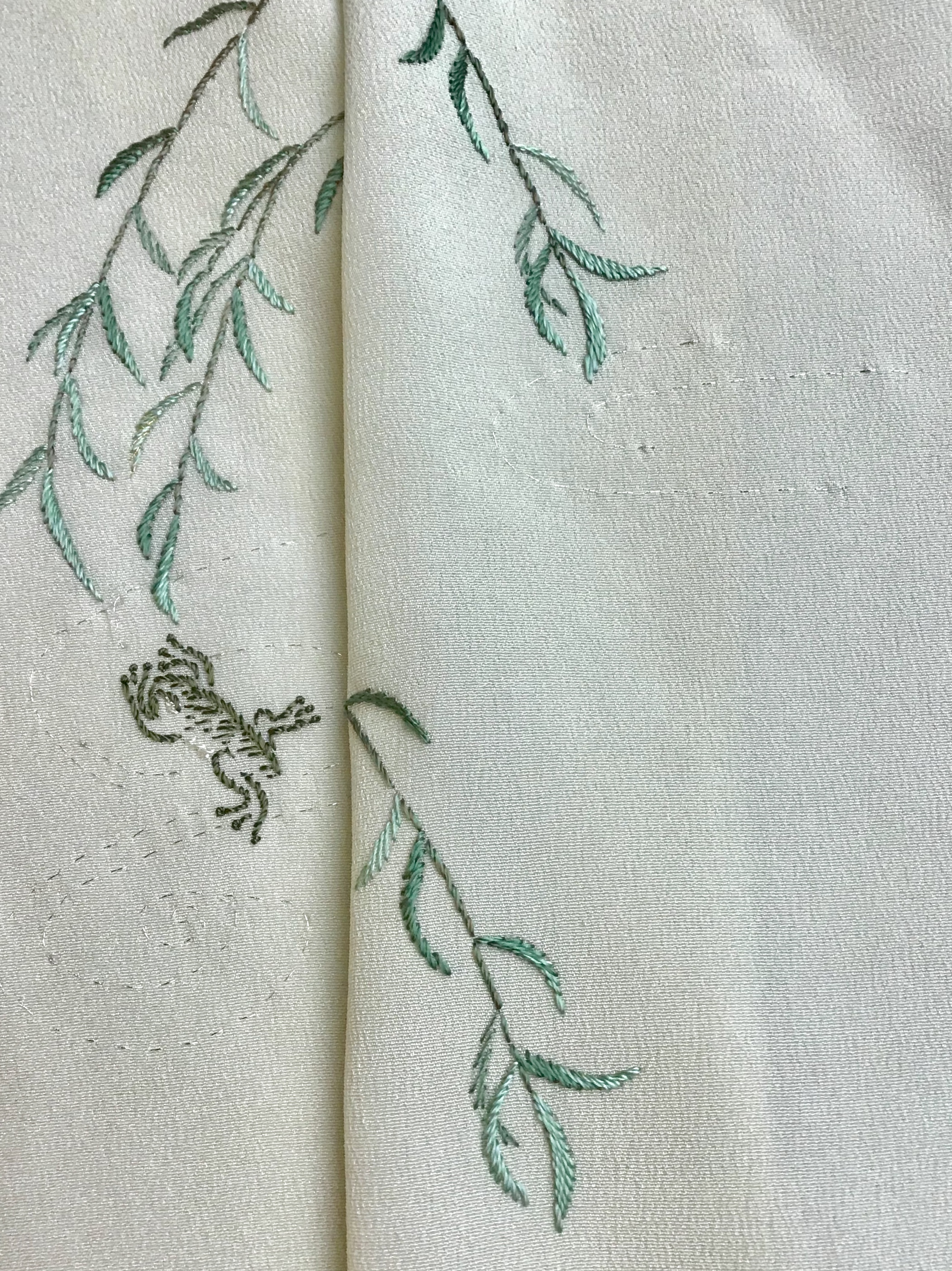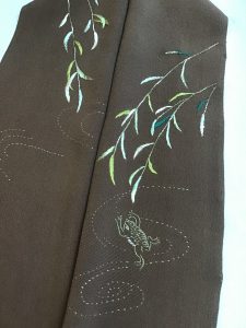 単衣の綿薩摩の心地良さは、この季節が待ちどうしいほど、心地よく、思わず、何度も触ってしまいます。寸法もたっぷりにお仕立て出来ました。