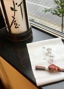 銀座店内は両方の窓を開け放してエアコンと自然風を感じる空間になっております。