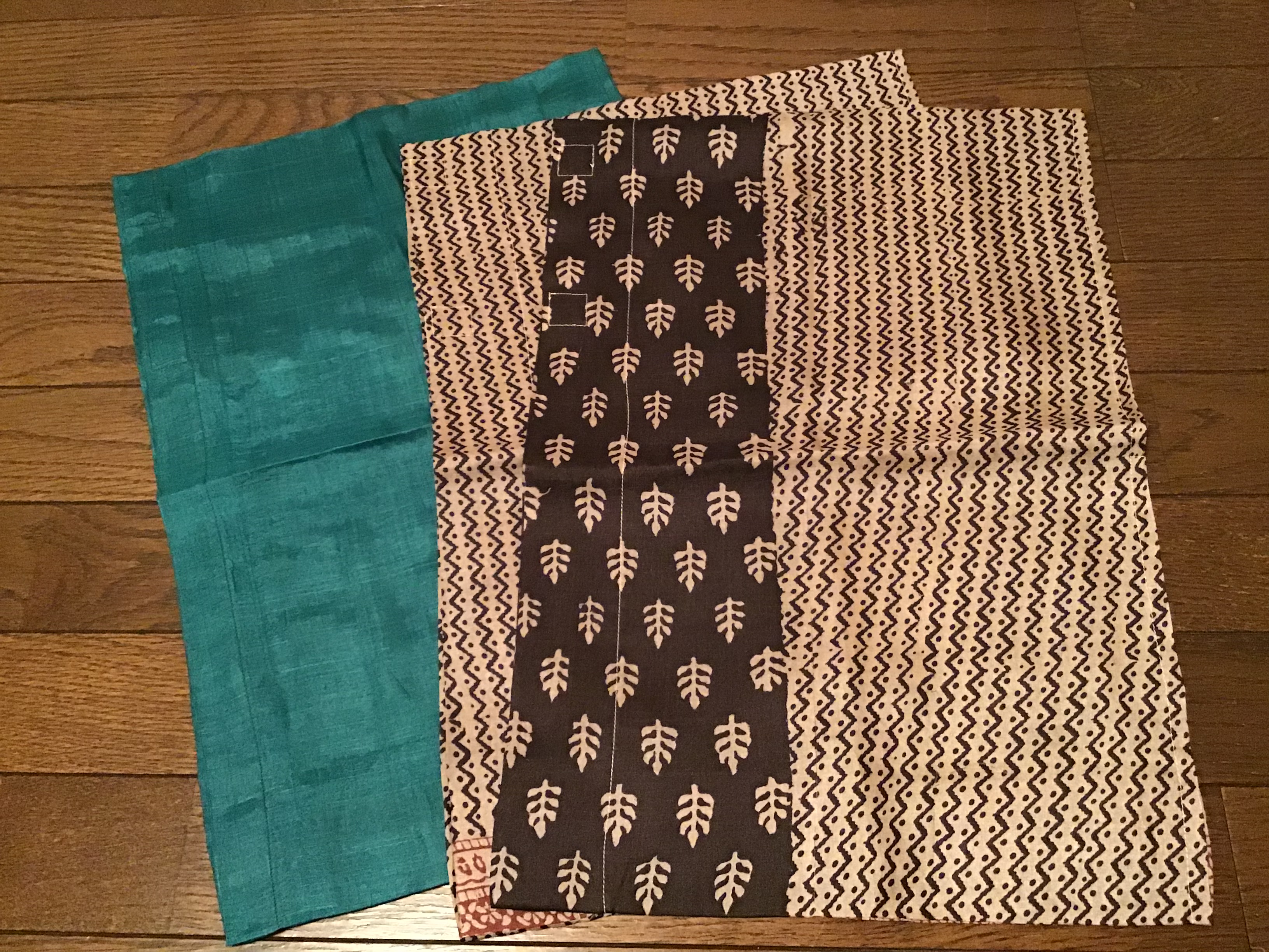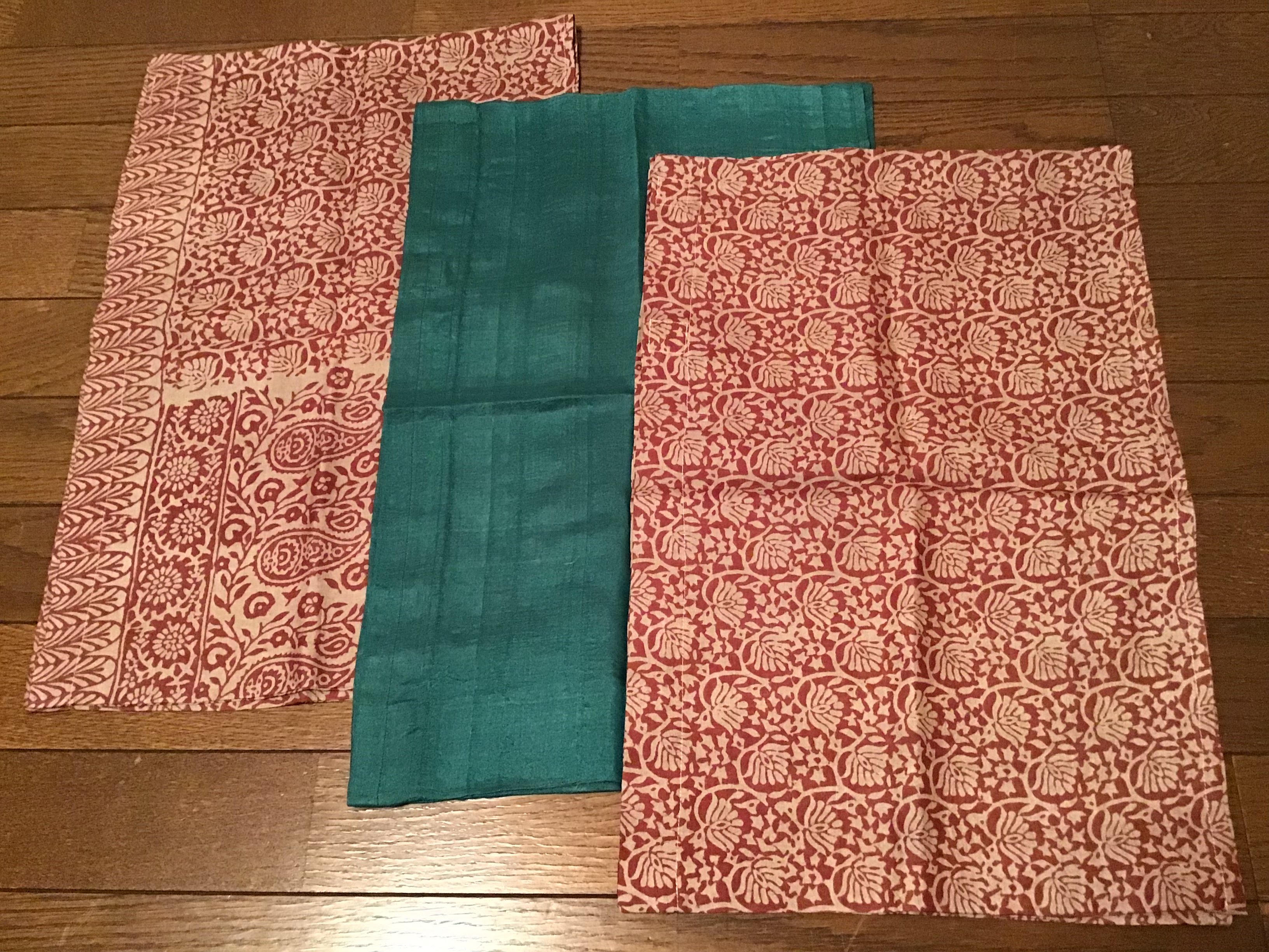 サリー袖単衣仕立て18,000円+税エメラルドグリーン無地1組、ベージュ✖️黒の片方づつ柄ちがい1組 お袖幅8寸8分お袖丈1尺2寸8分