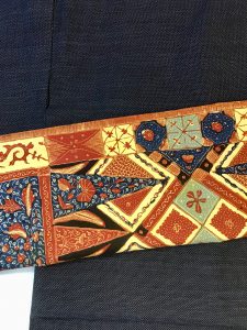 長方形をした、1枚のジャワ更紗のままから、名古屋帯へのお仕立て上がりでのお渡しです。