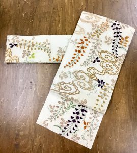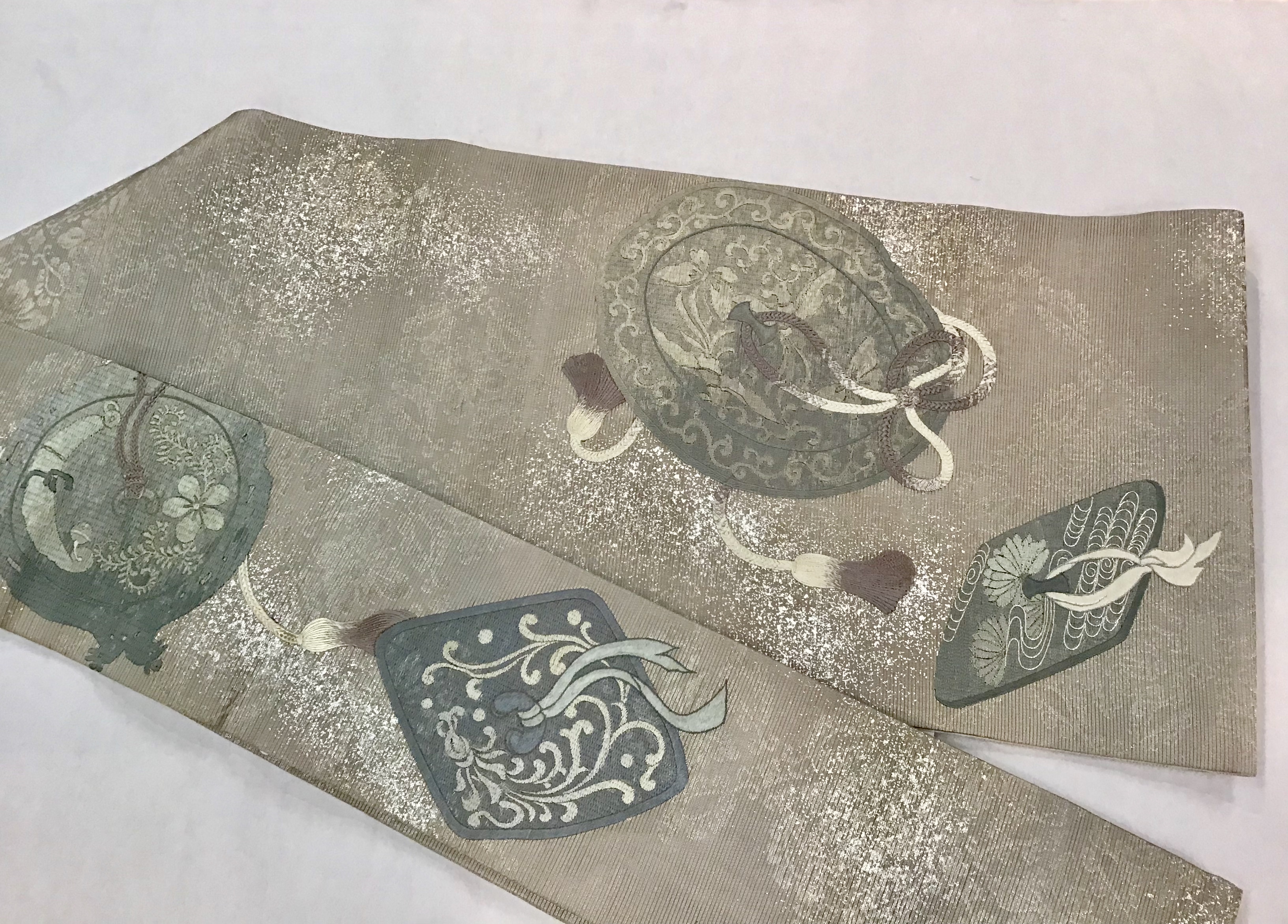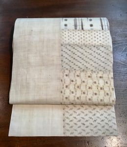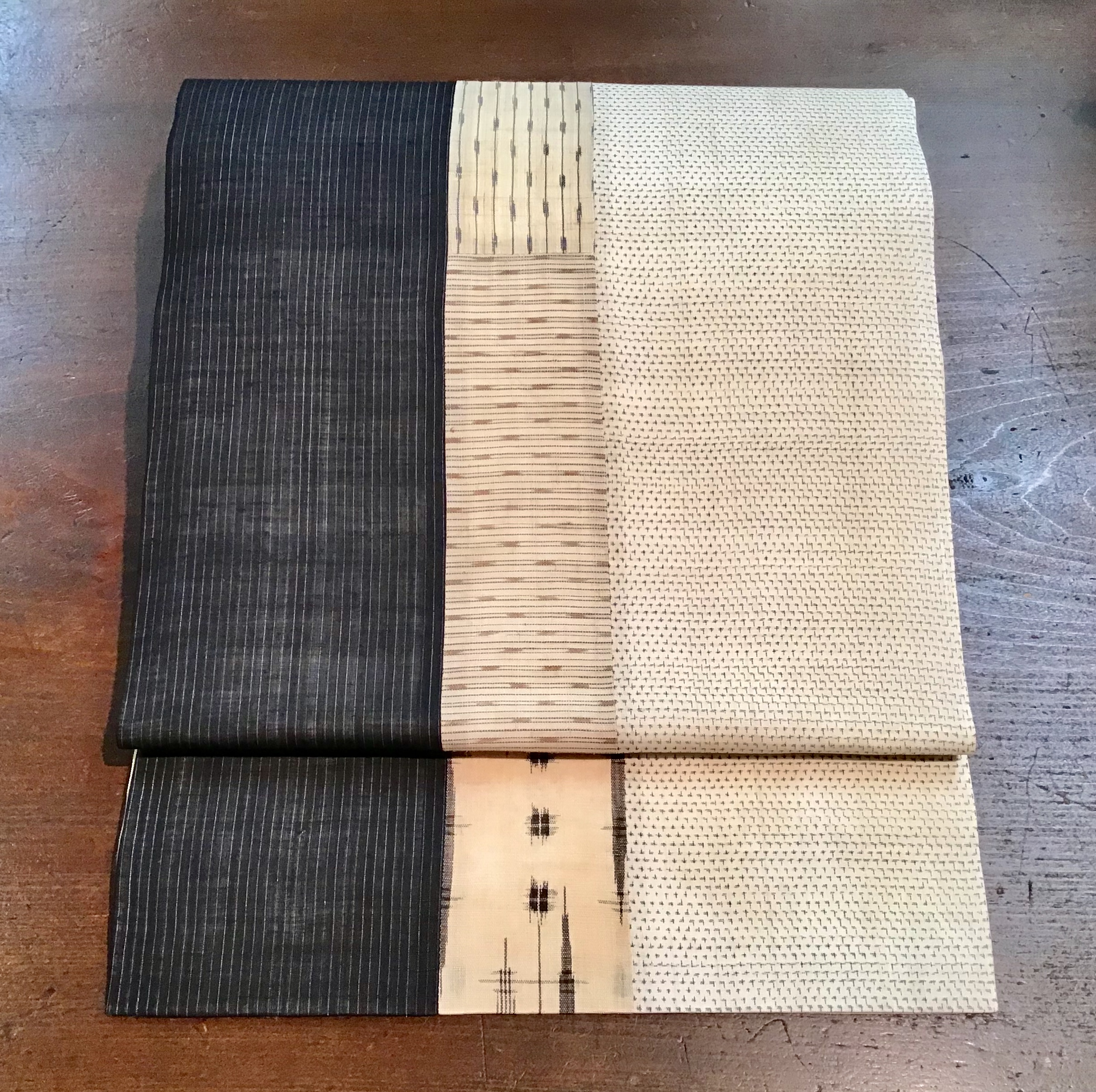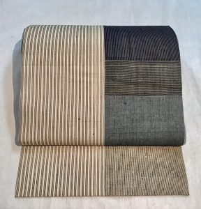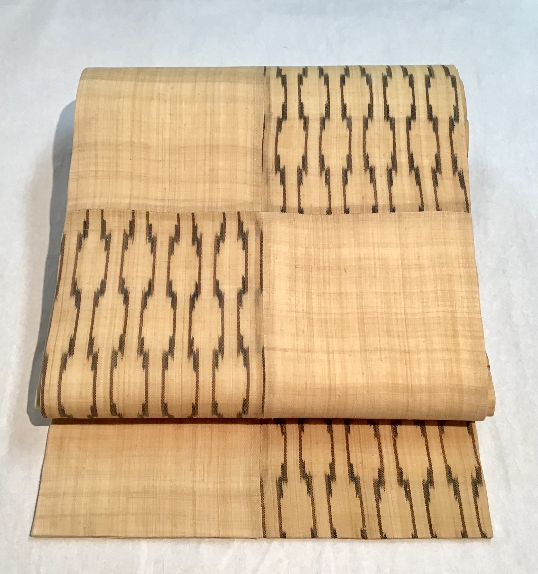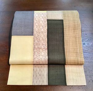 2本目の帯は、ベージュや茶系の上布を組み合わせたもの。