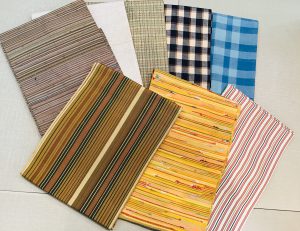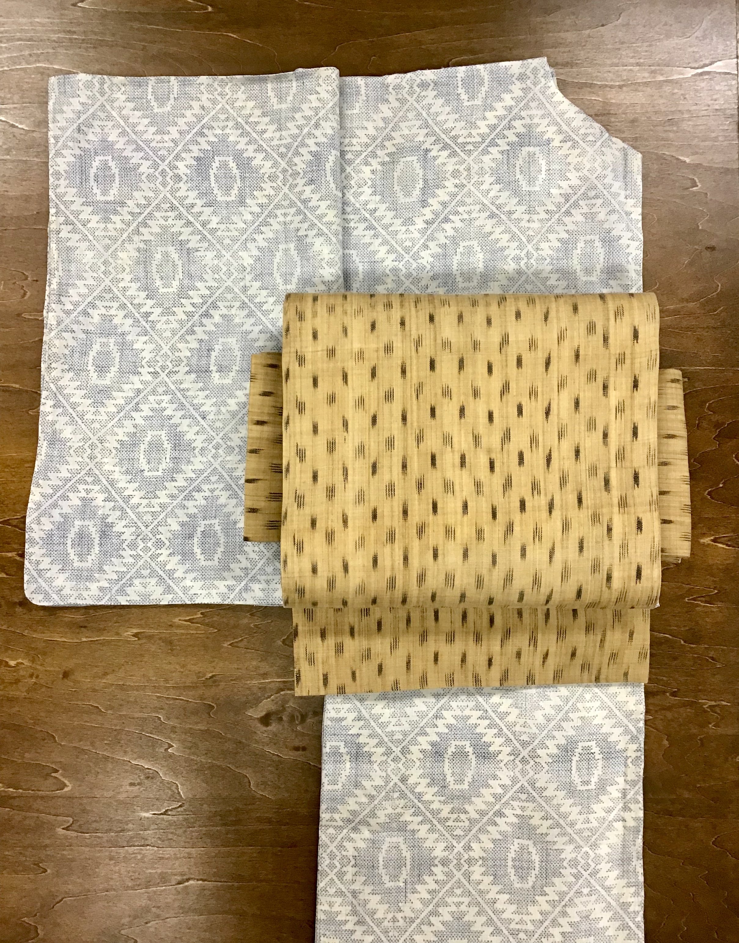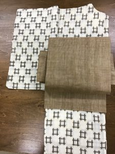 もう1枚は優しい生成りにこげ茶の大きめの井桁模様が個性的な八重山上布。