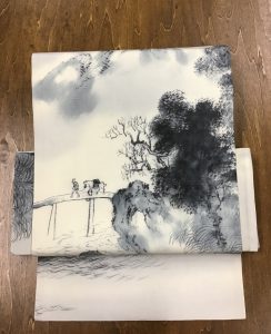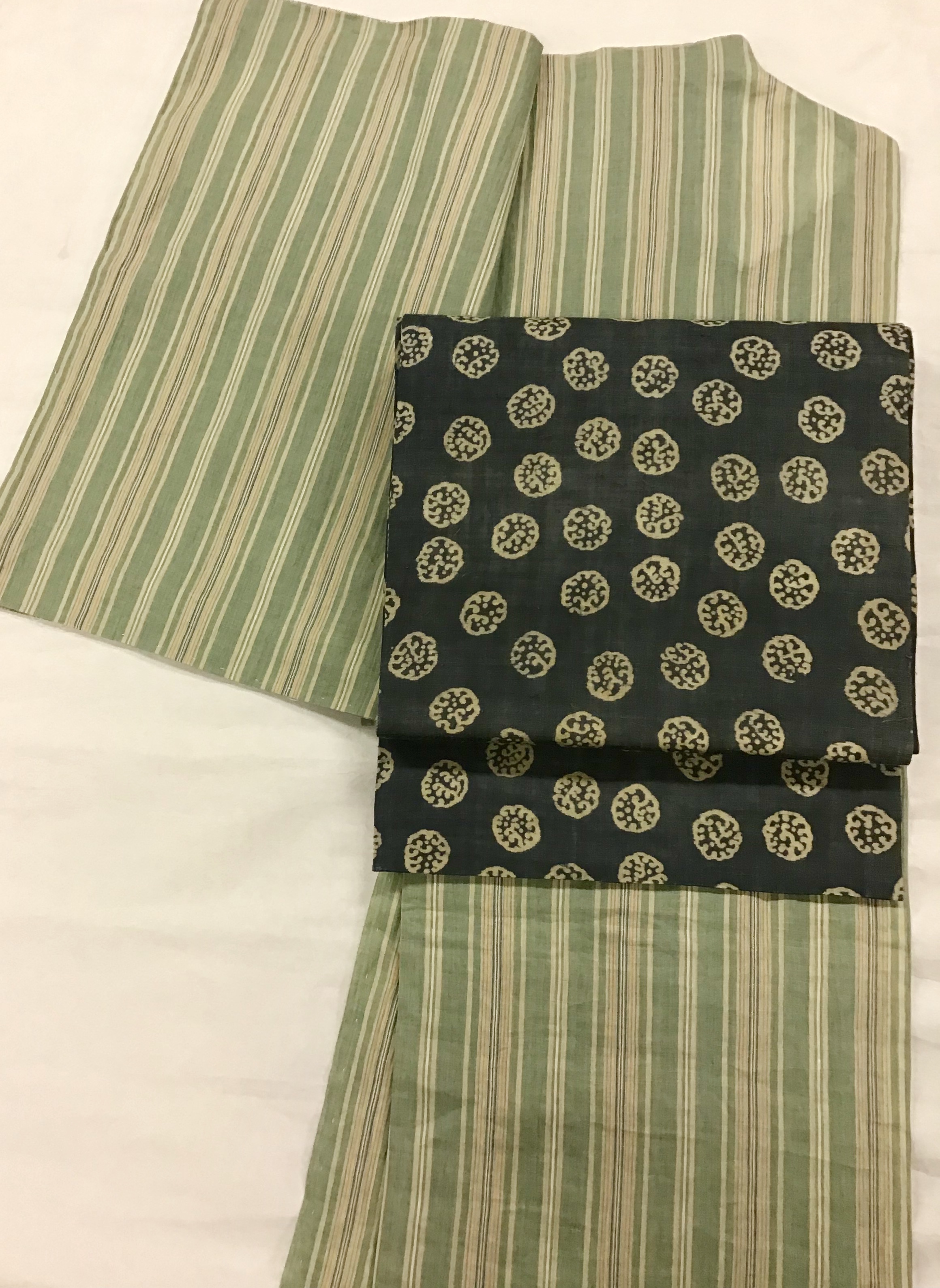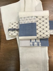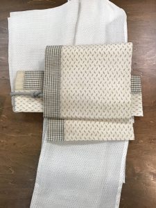 こちらには越後上布で作ったシンプルな帯をきりっと合わせました。