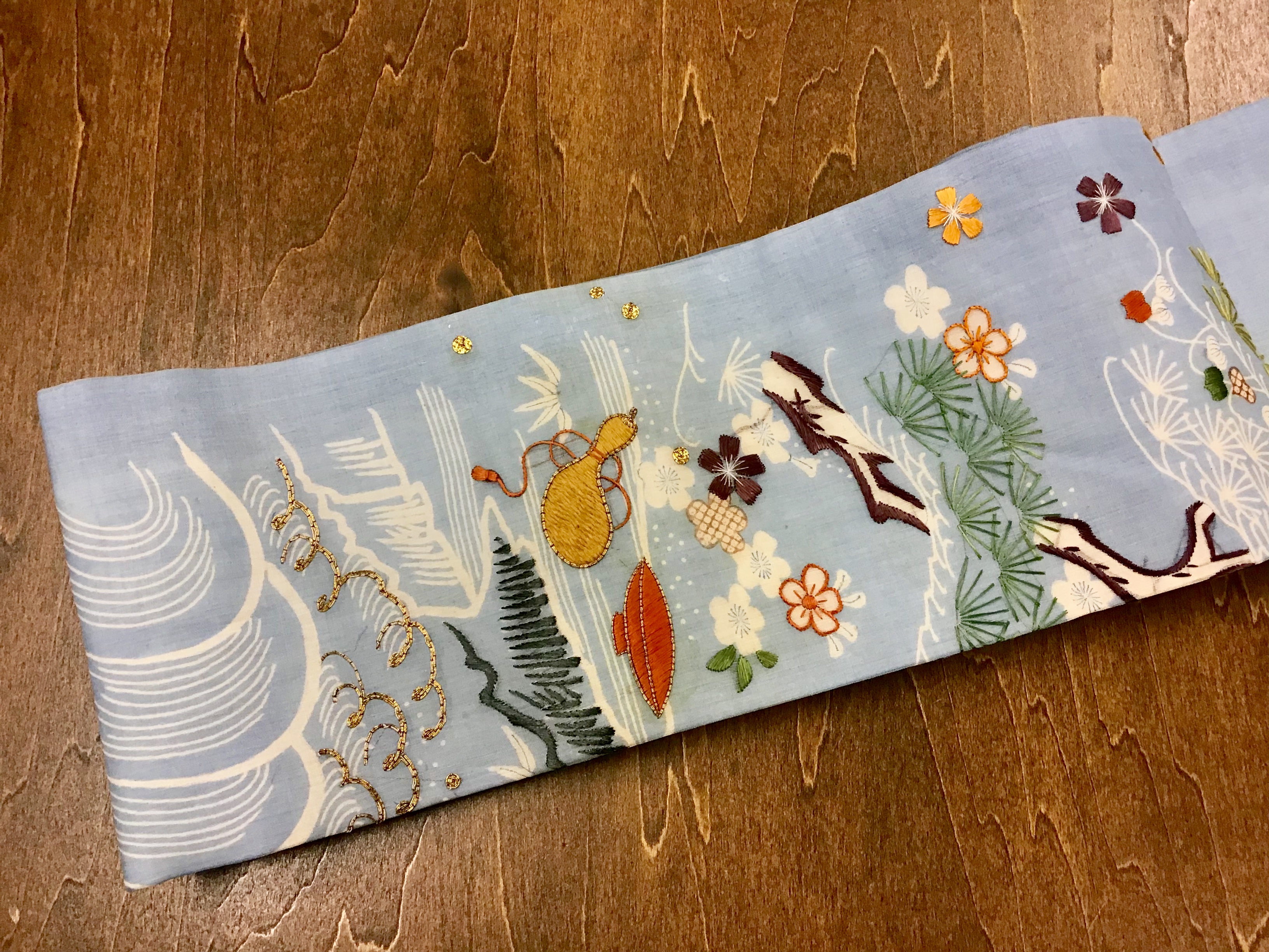 1本目の帯はブルーが、アクセントとなった爽やかな色合い、元気になりますね。
