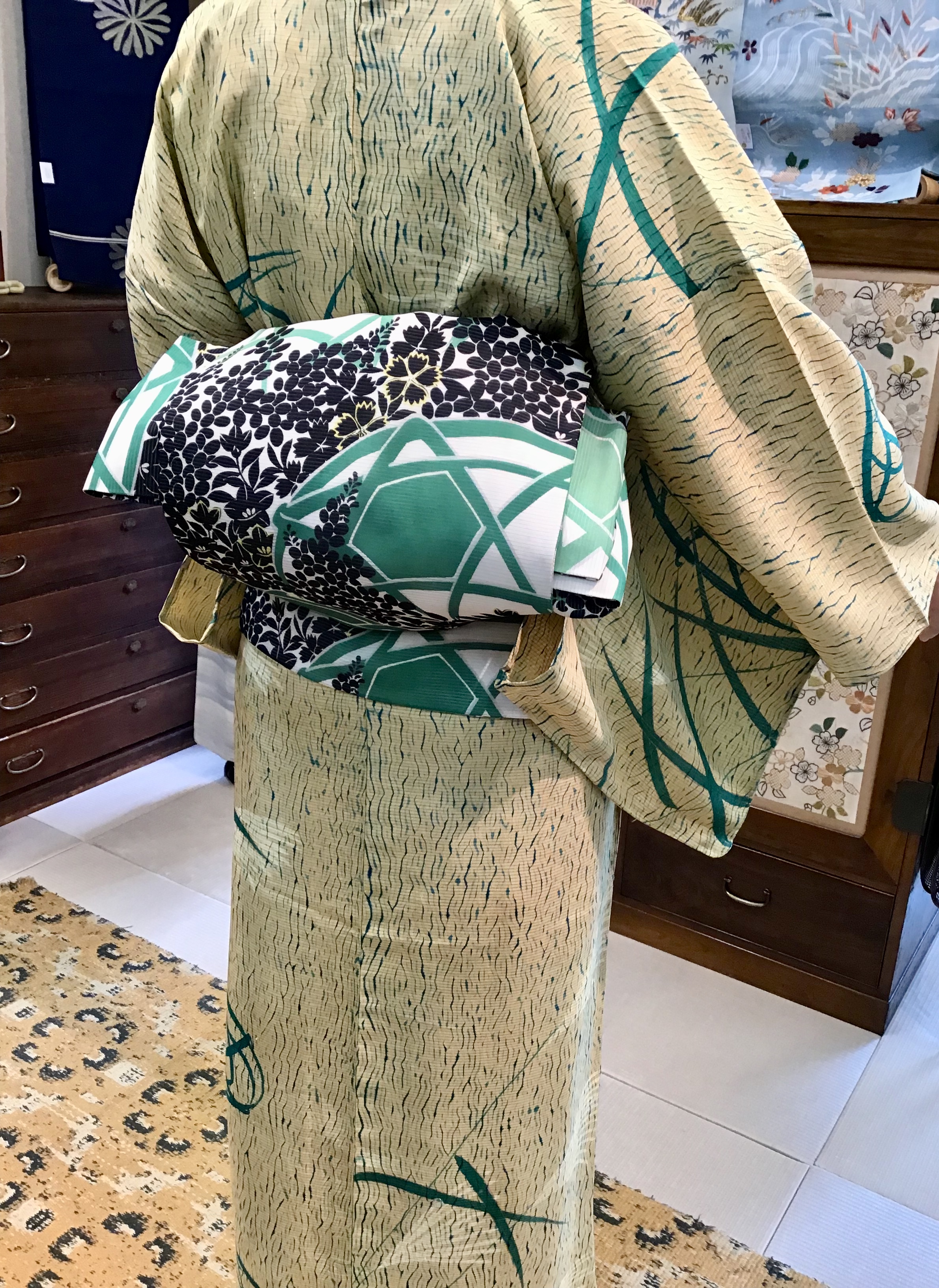シンプルなお着物に帯でステキな夏コーデを楽しんで下さい!