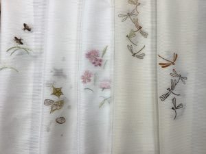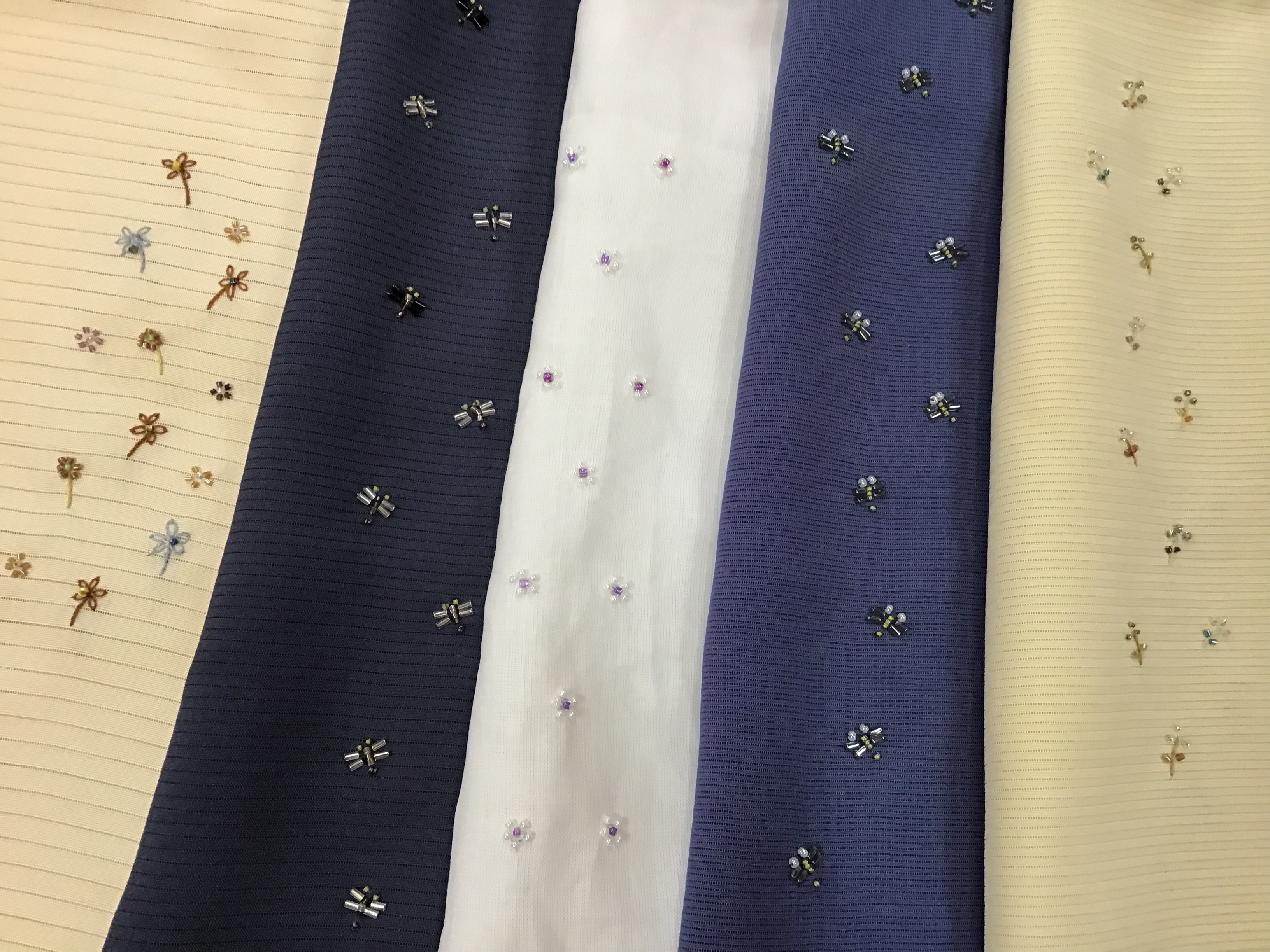 銀座店に並ぶ、夏着物や帯もお客様の手にとられ、広げてご覧頂ける事をよろこんでいるようです。
