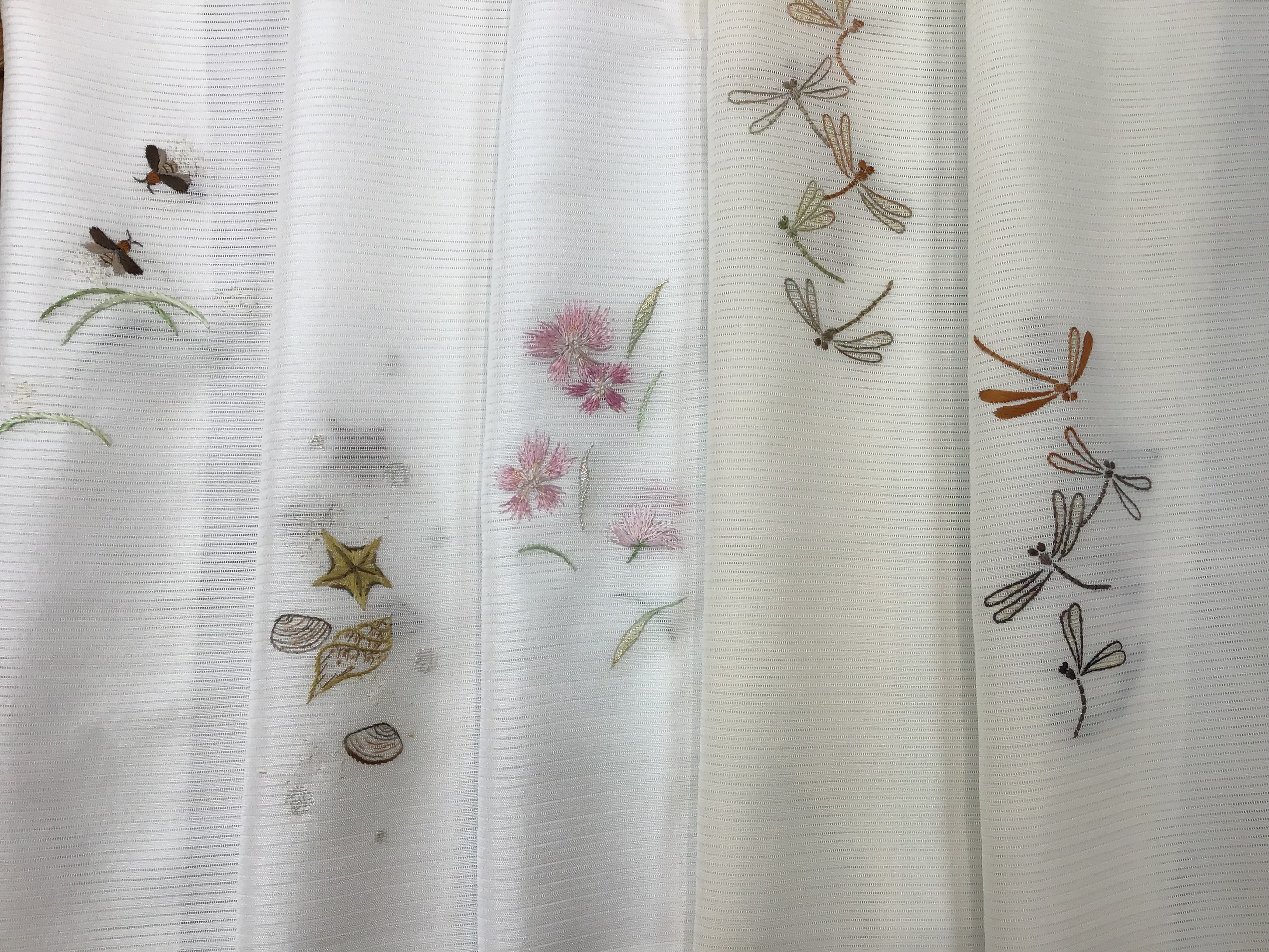 今回は、日本の伝統美とも言える茶屋染めと天然染料の美しい絹糸で刺繍された江戸小袖からお仕立てした帯や美しいアンティークの染めを仕立て直した夏着物や手刺繍の帯。