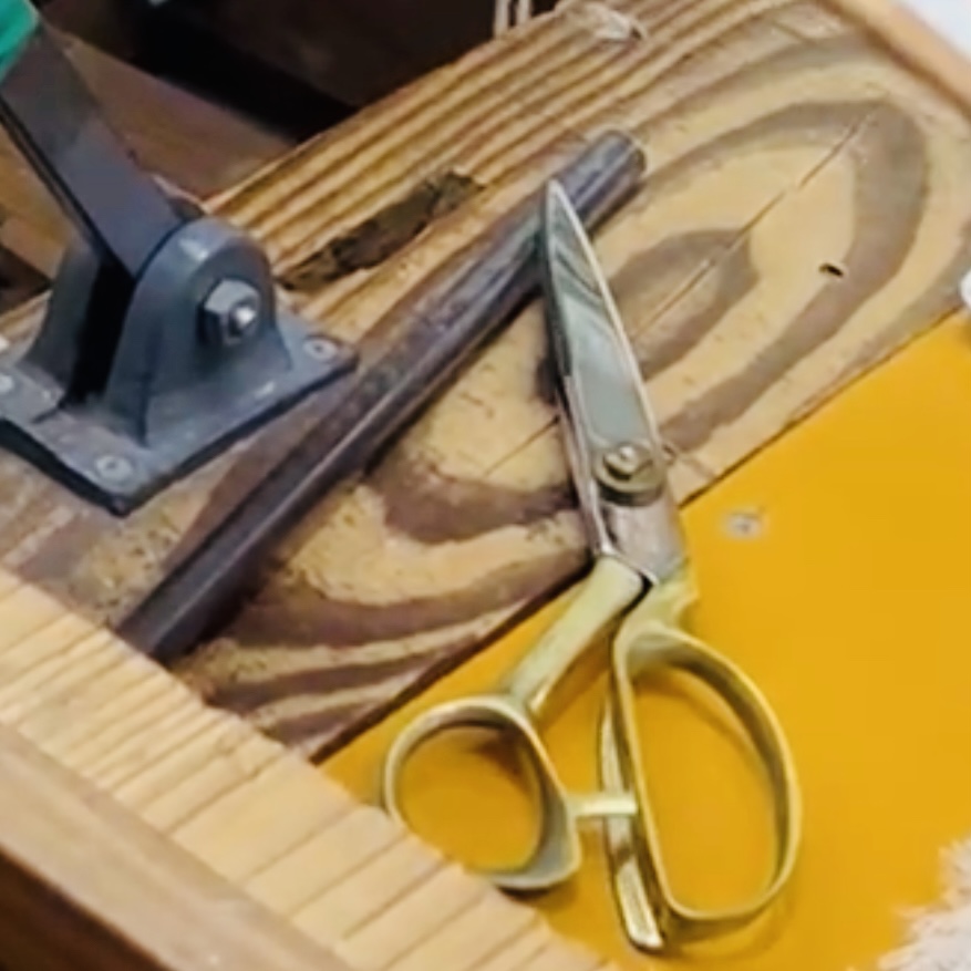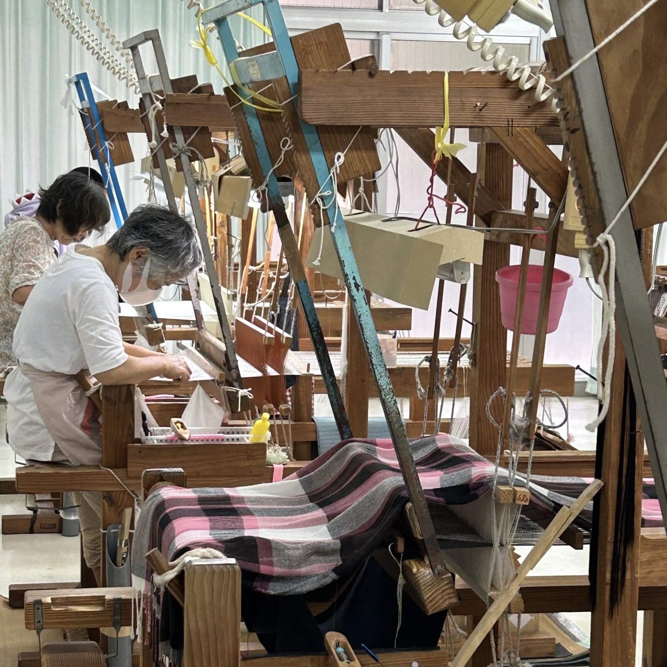 東さんはまだ入って1年に満たないというのに繊細な手付きで糸や機を扱っていましたが、ふと目の前にゴールドの裁ちバサミが目にはいりました。と同時に先生が、彼はこれを上手に扱うんですよ、とおっしゃる。ああ、このハサミの場があった、そして彼に似あってる。この先生にしてこのお弟子あり、東さんの行く末が楽しみです。