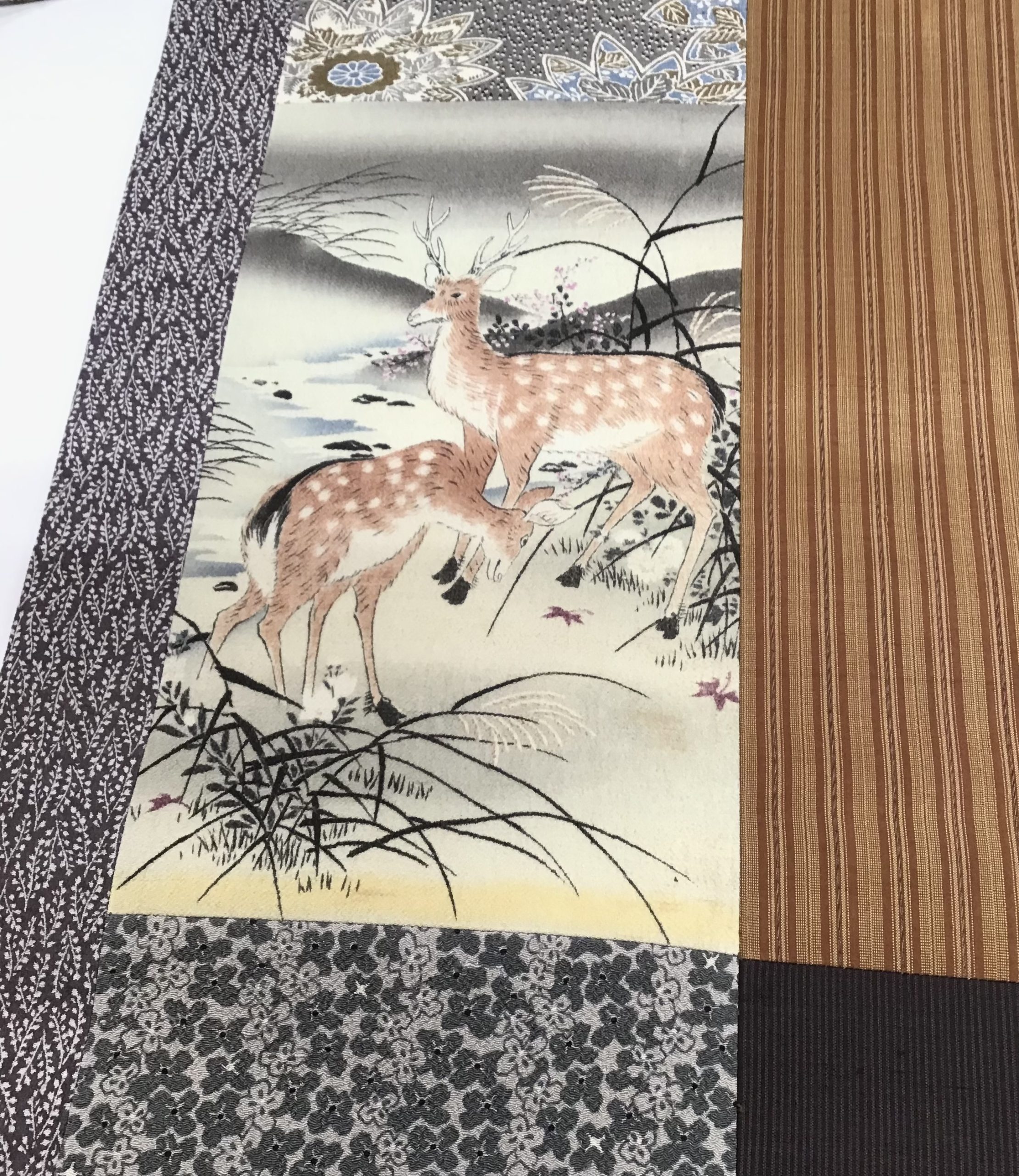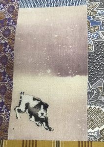 千鳥の藍絣上布の継ぎ裂帯 95,000円(税込)