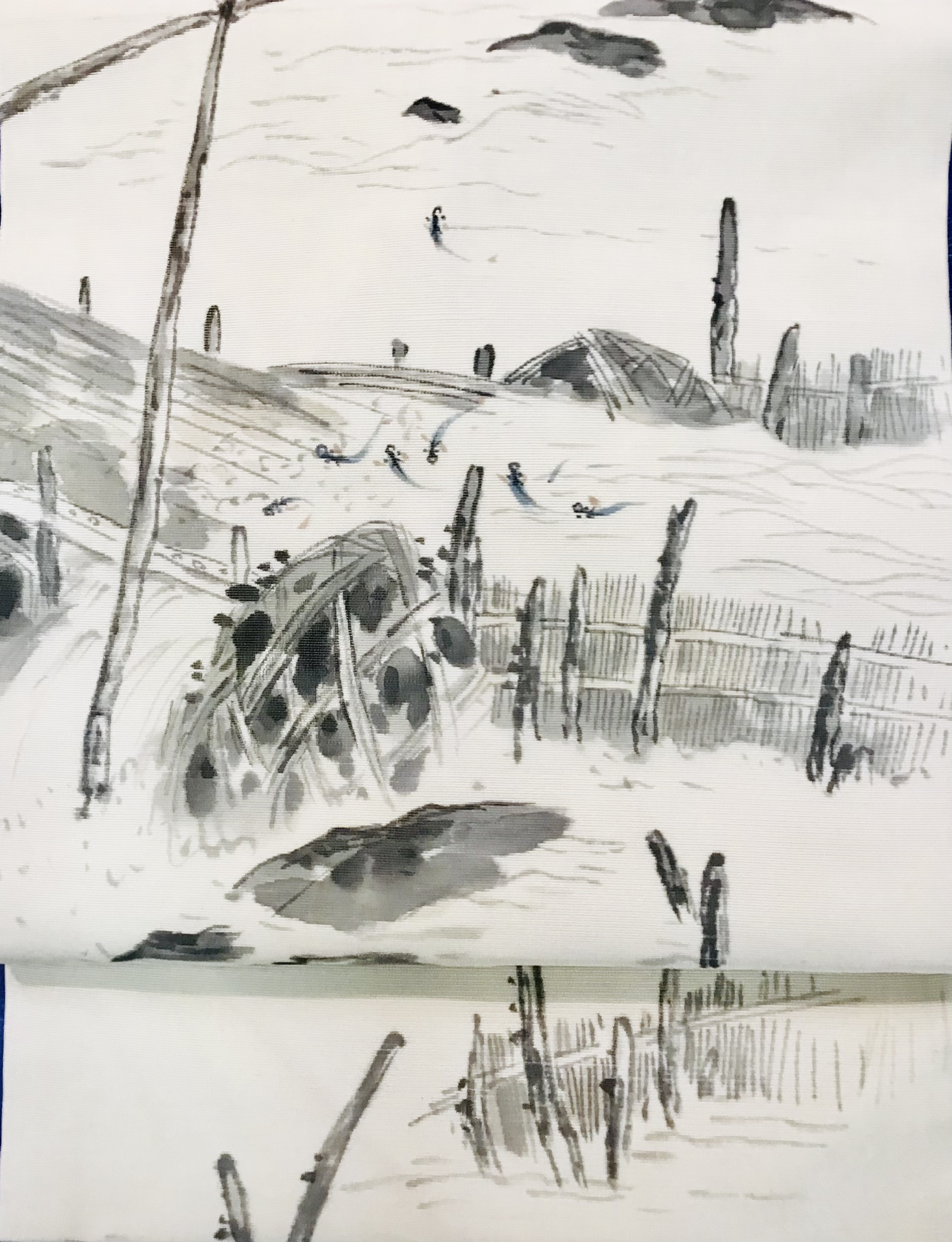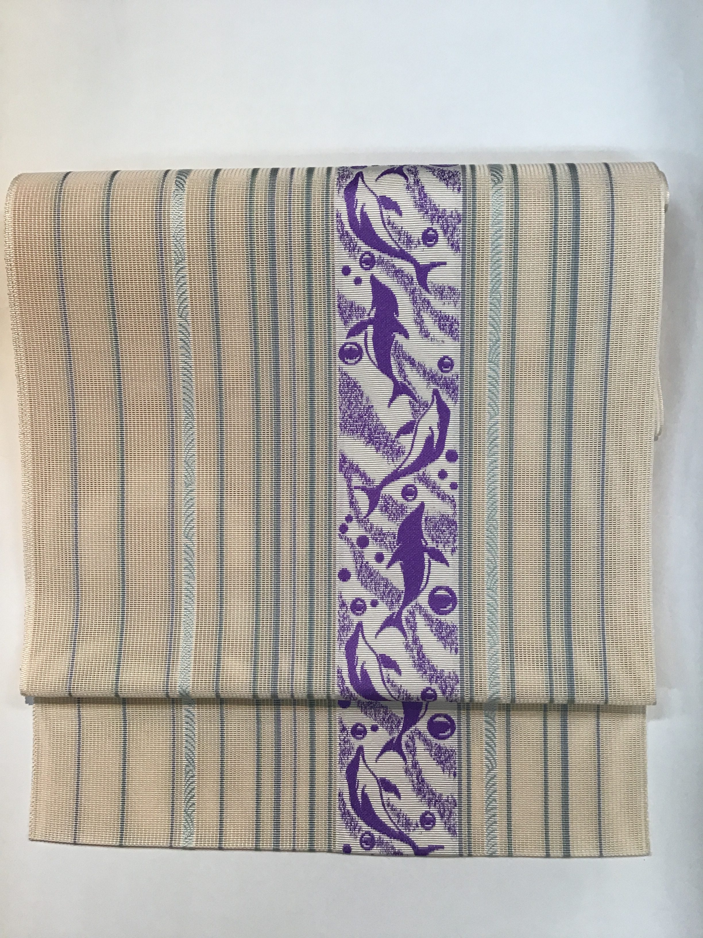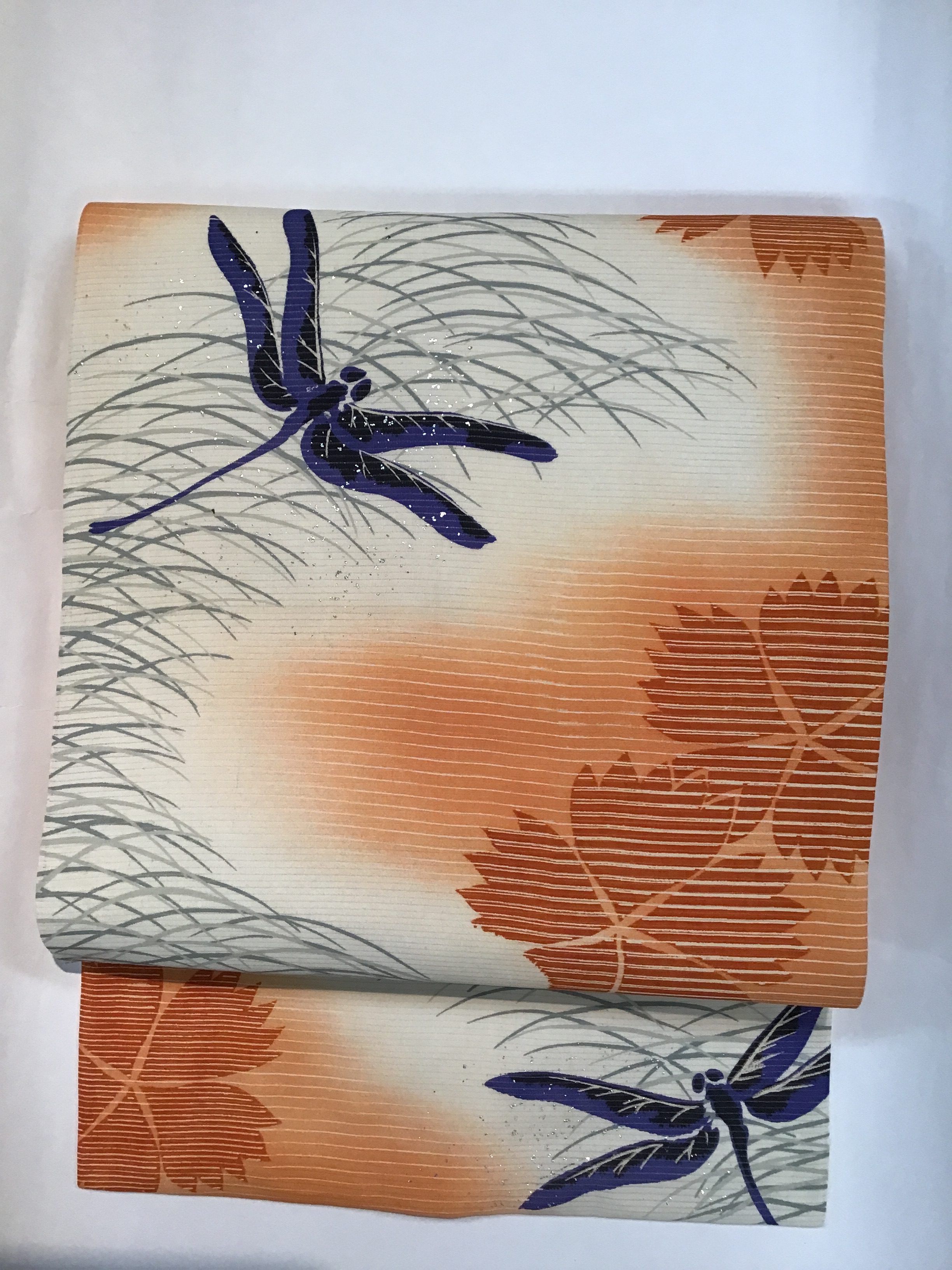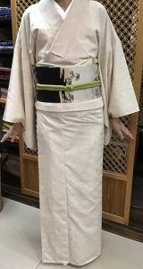 黄味かかったベージュの小千谷縮(Lサイズ)に小千谷名古屋帯
