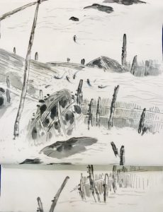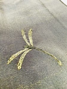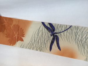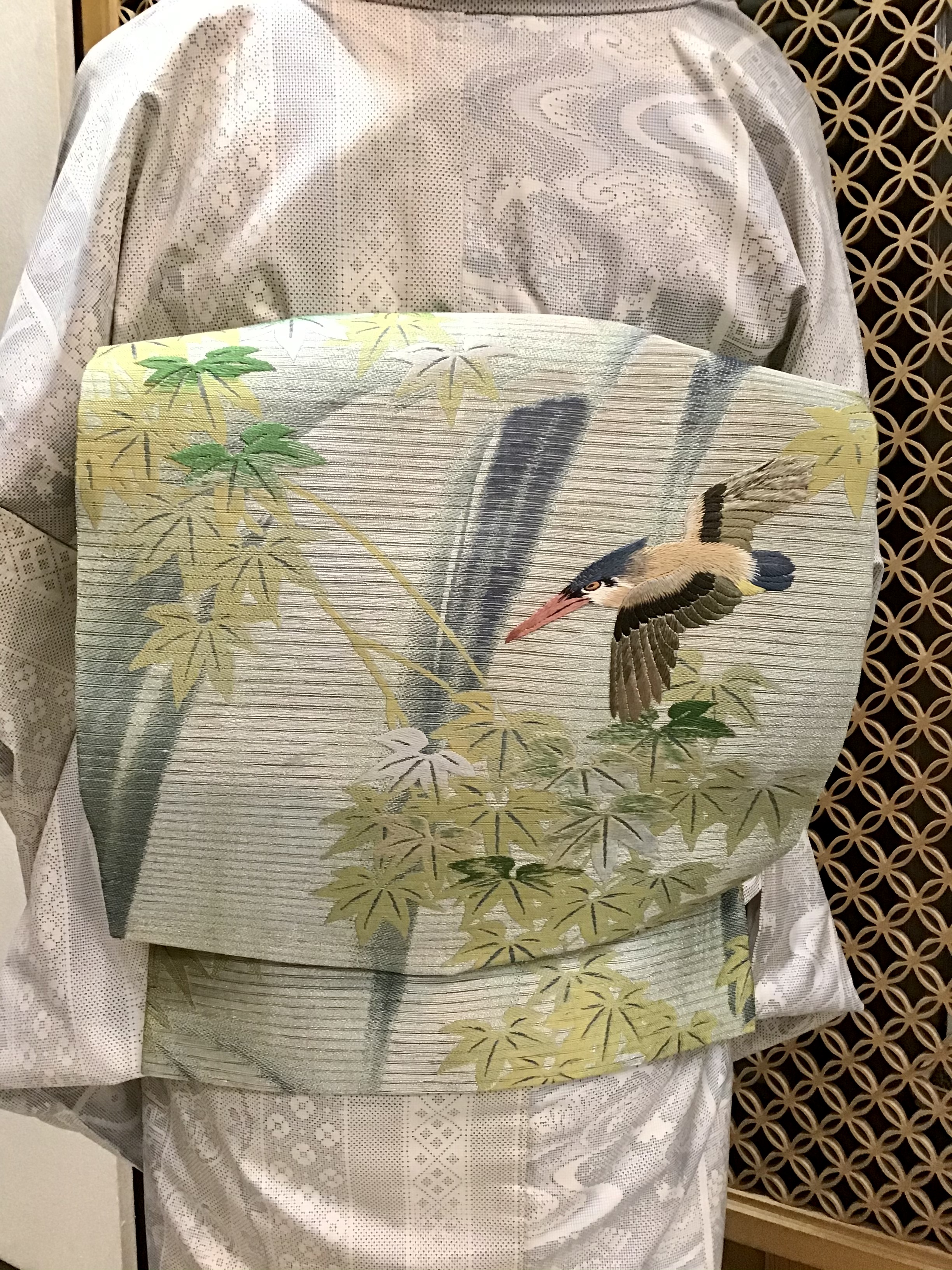 帯には青花の柄もあり、青の染め分けの絽の丸ぐけが、涼しさを増します。