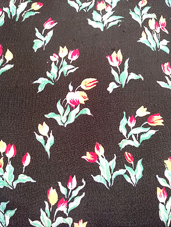 橙の花びらに青い葉の、大輪の八重桜が遠目にも目を引く、アンティークの贅沢な刺繍。