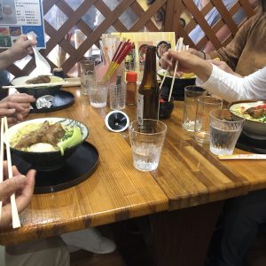 地元タクシー運転士さんおすすめ、ここは定番沖縄ソバをいただきました。お店は満席。