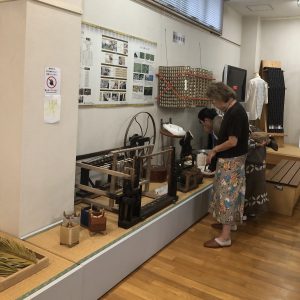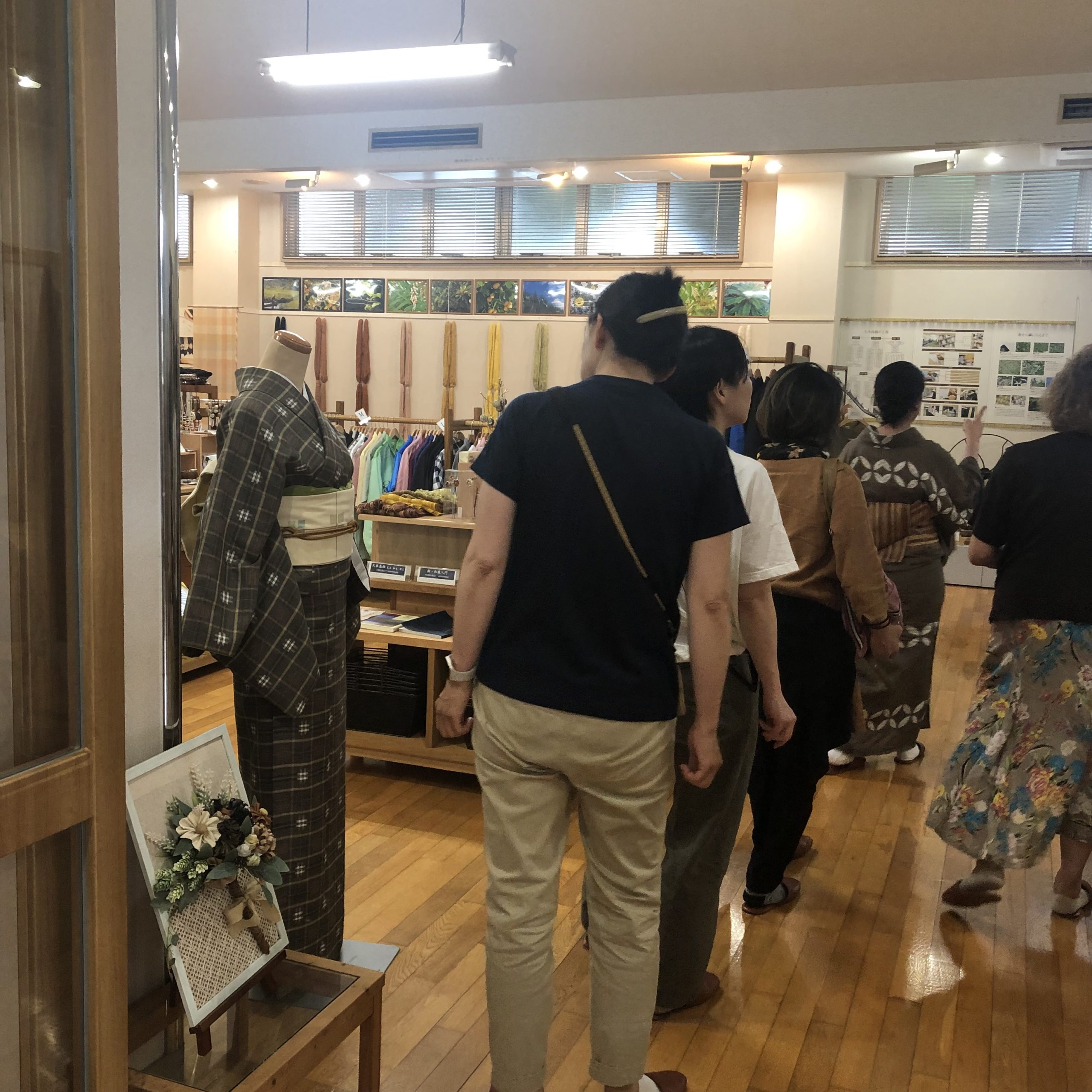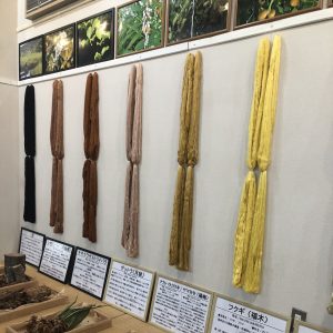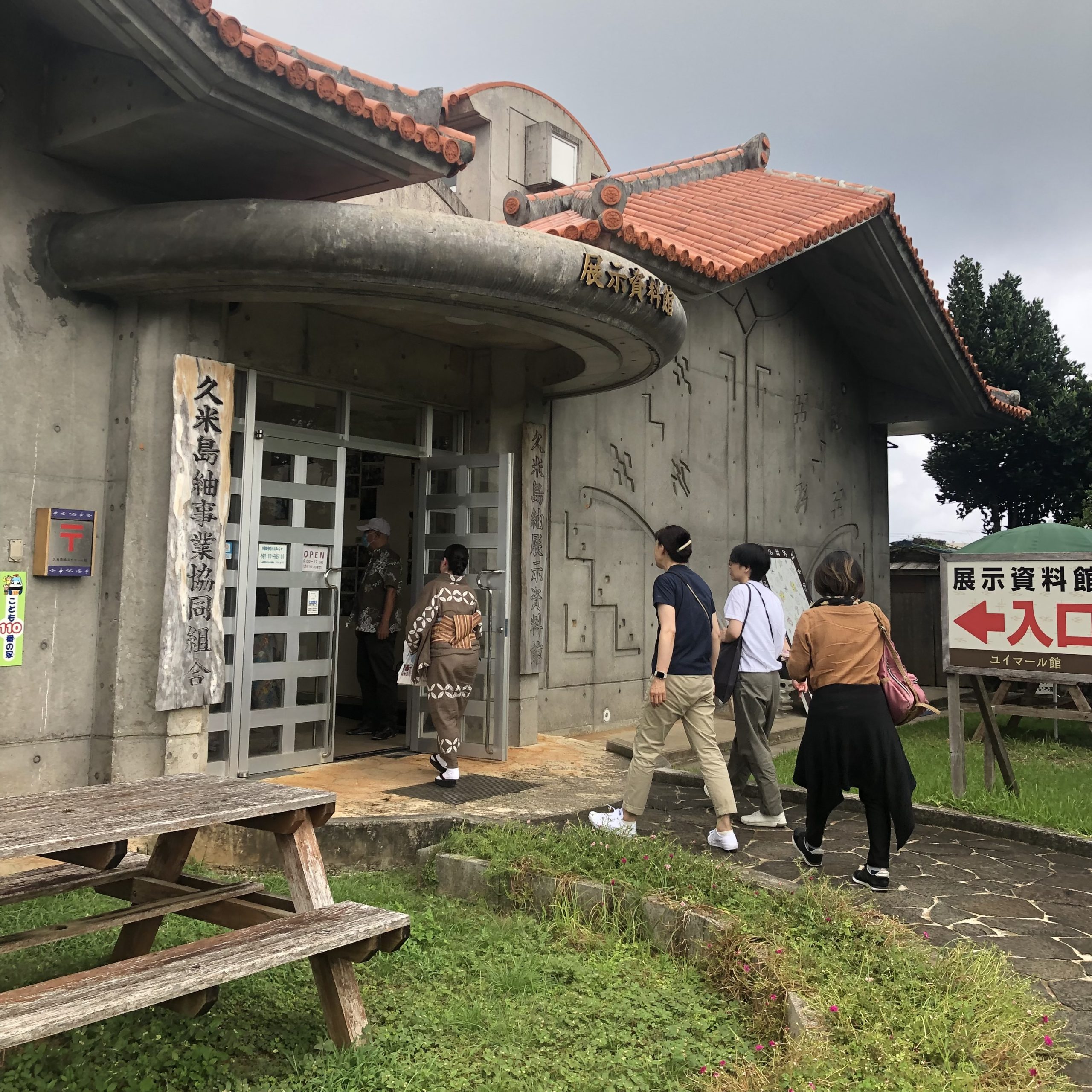 まず久米島紬協同組合へ。1Fは久米島紬について知ることの出来るコーナー。染料の原料となる木や葉、美しく染色された絹糸、着物、用具など興味深い展示が。2Fは工房で写真不可でしたが、数名にのぼる職人さんが思い思いの作品作りに取り組まれていました。緻密な作業と美しい色が印象的でした。1Fはお土産コーナーもあり、貴重な着尺やストールなど素敵なものが盛りだくさん!