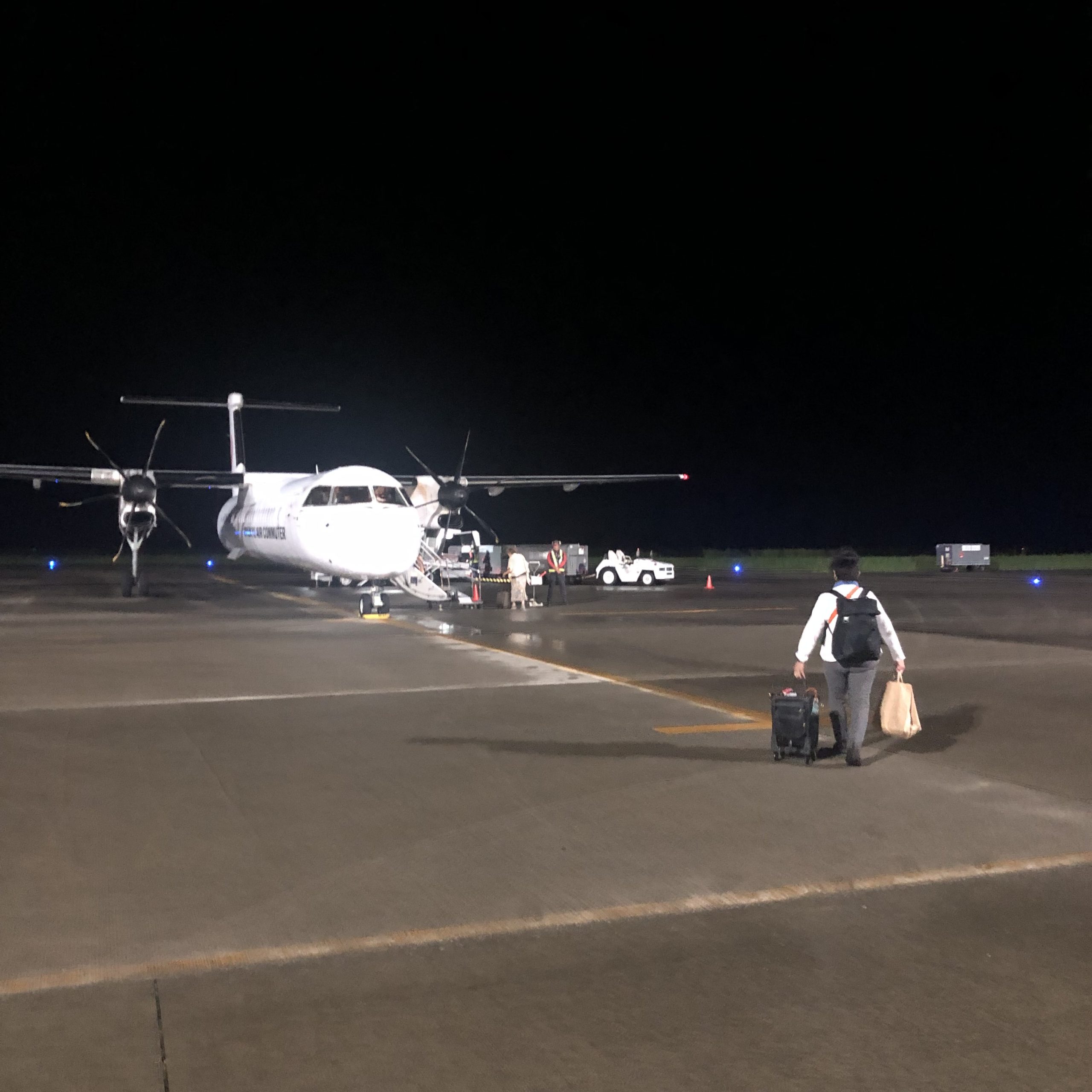 悪天候により、到着機の遅れに見舞われましたがプロペラ機で再び那覇へ!