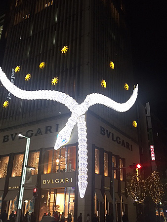 どうぞご来店の際にご覧になるには、3丁目に渡る交差点の角を、上を向いてお歩き下さいませ。