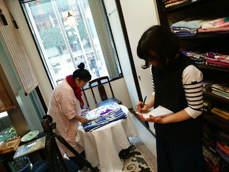 春のやわらかな陽射しの灯屋2銀座店内で七緒の取材の様子です。
