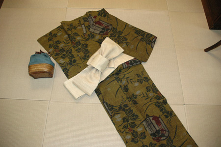 当店でのおすすめは、ゆかたがわりに、ゆかた以上に涼しくお召しいただける、アンティークの小地谷縮。