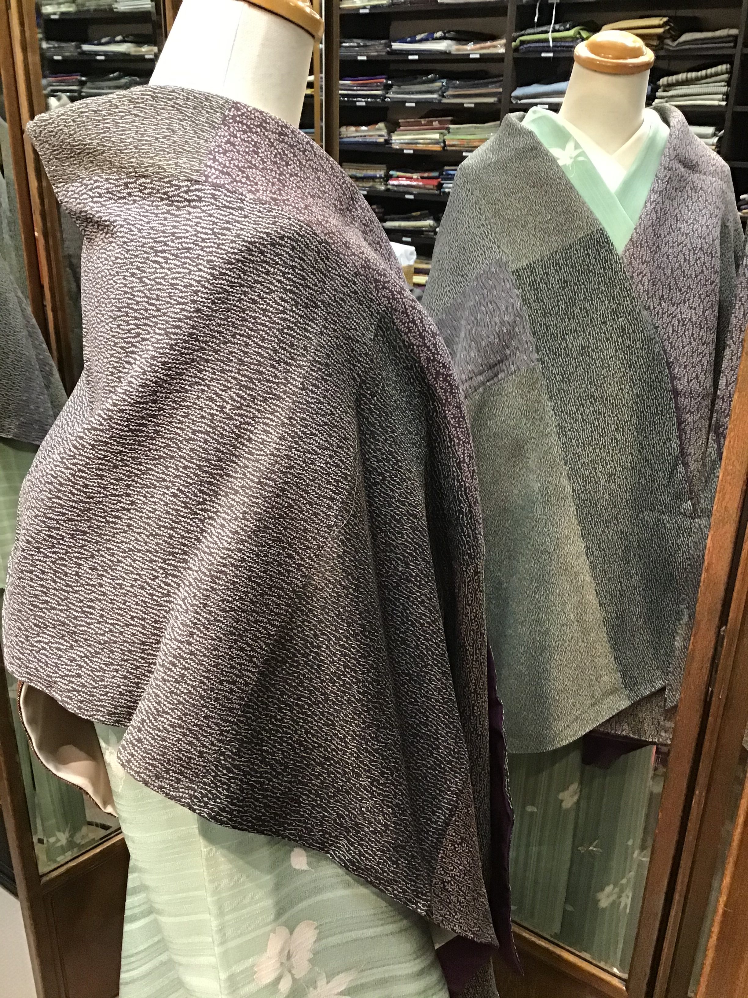 絽目が入った夏着物ですが、僅かに細かな縮緬のシボが感じられるので夏前の単衣からお召しいただけます。