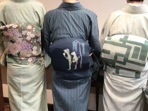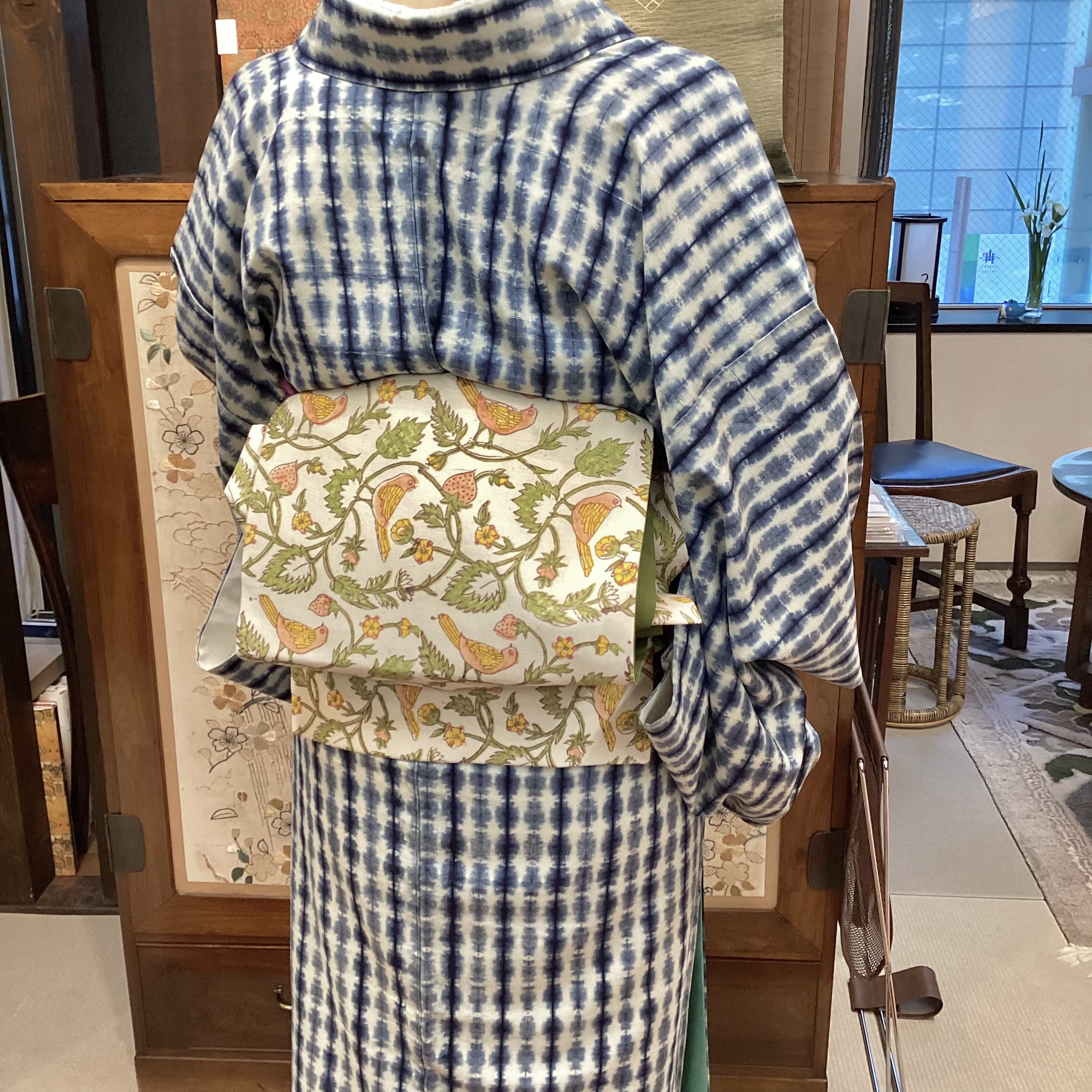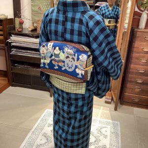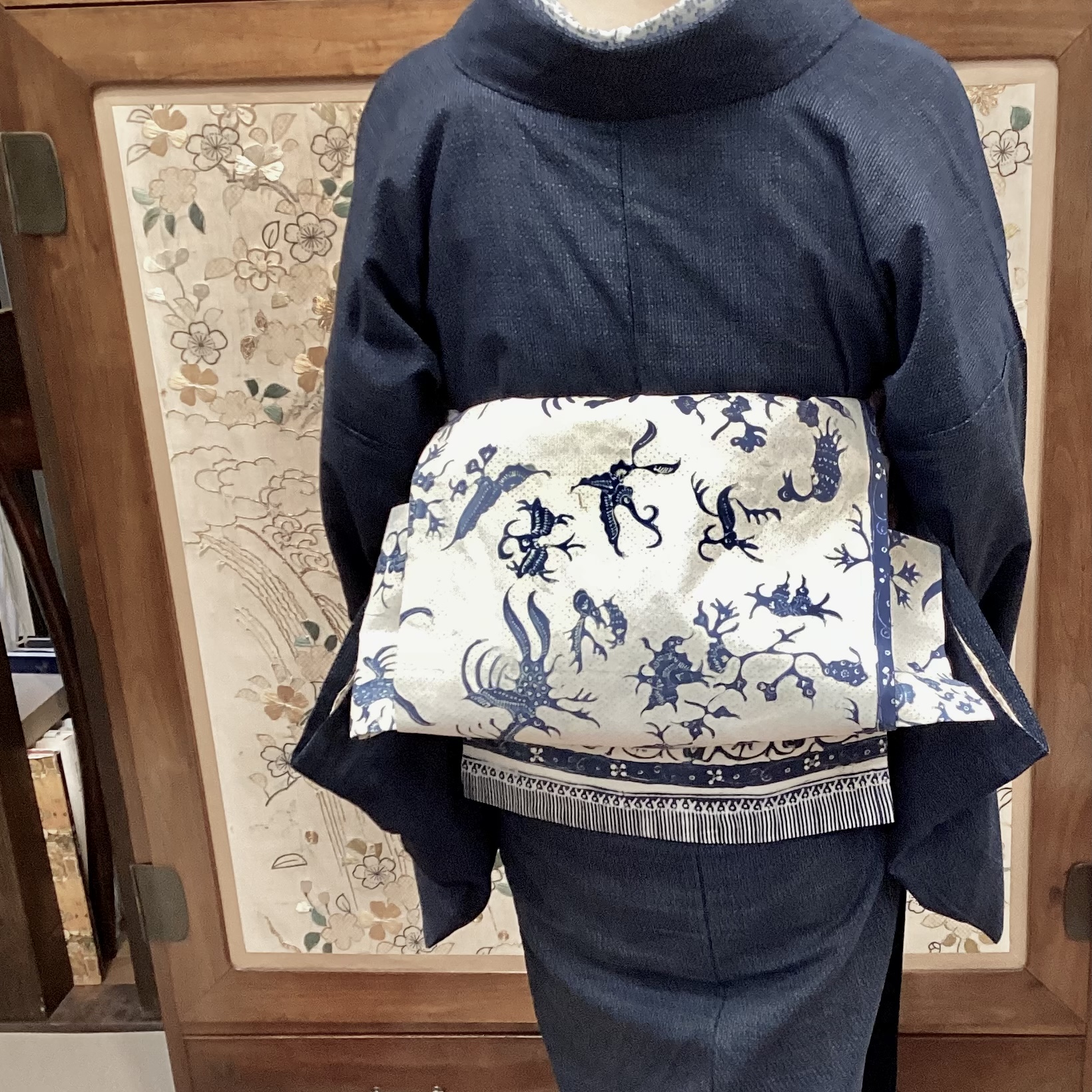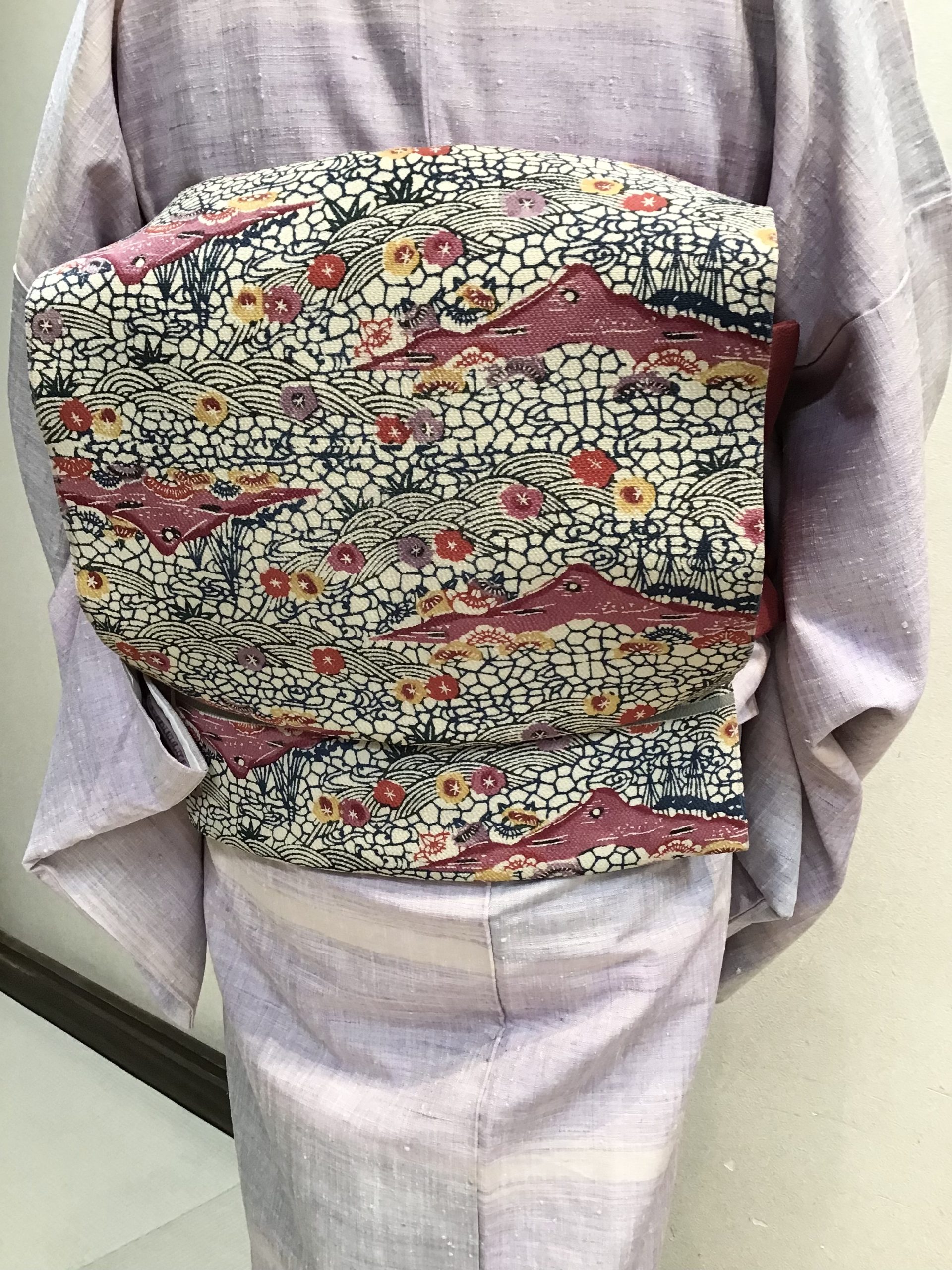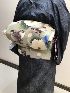 そして最後のお客様の帯はうさぎとススキが織り込まれた、アンティークの帯。