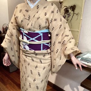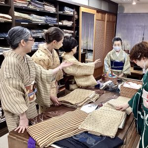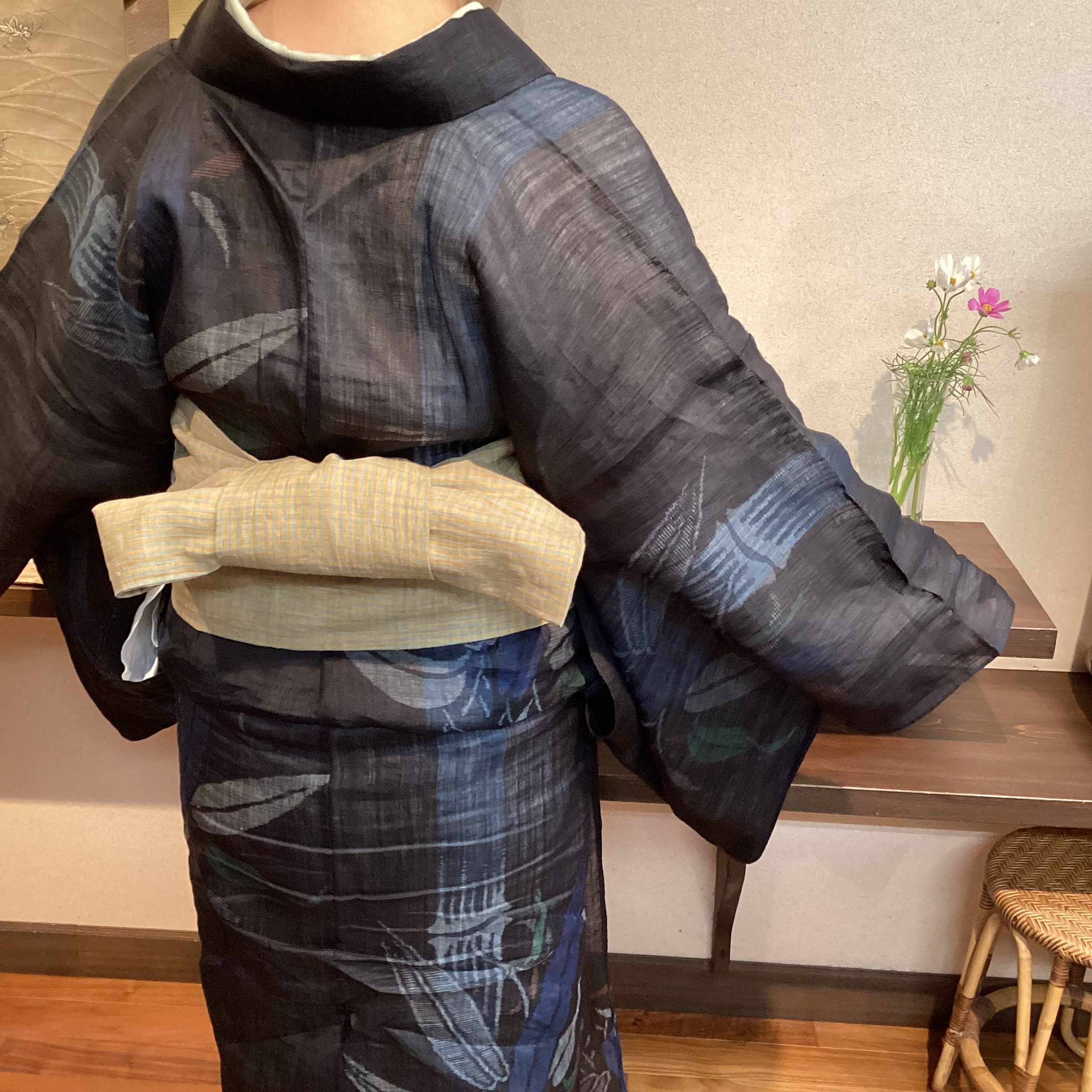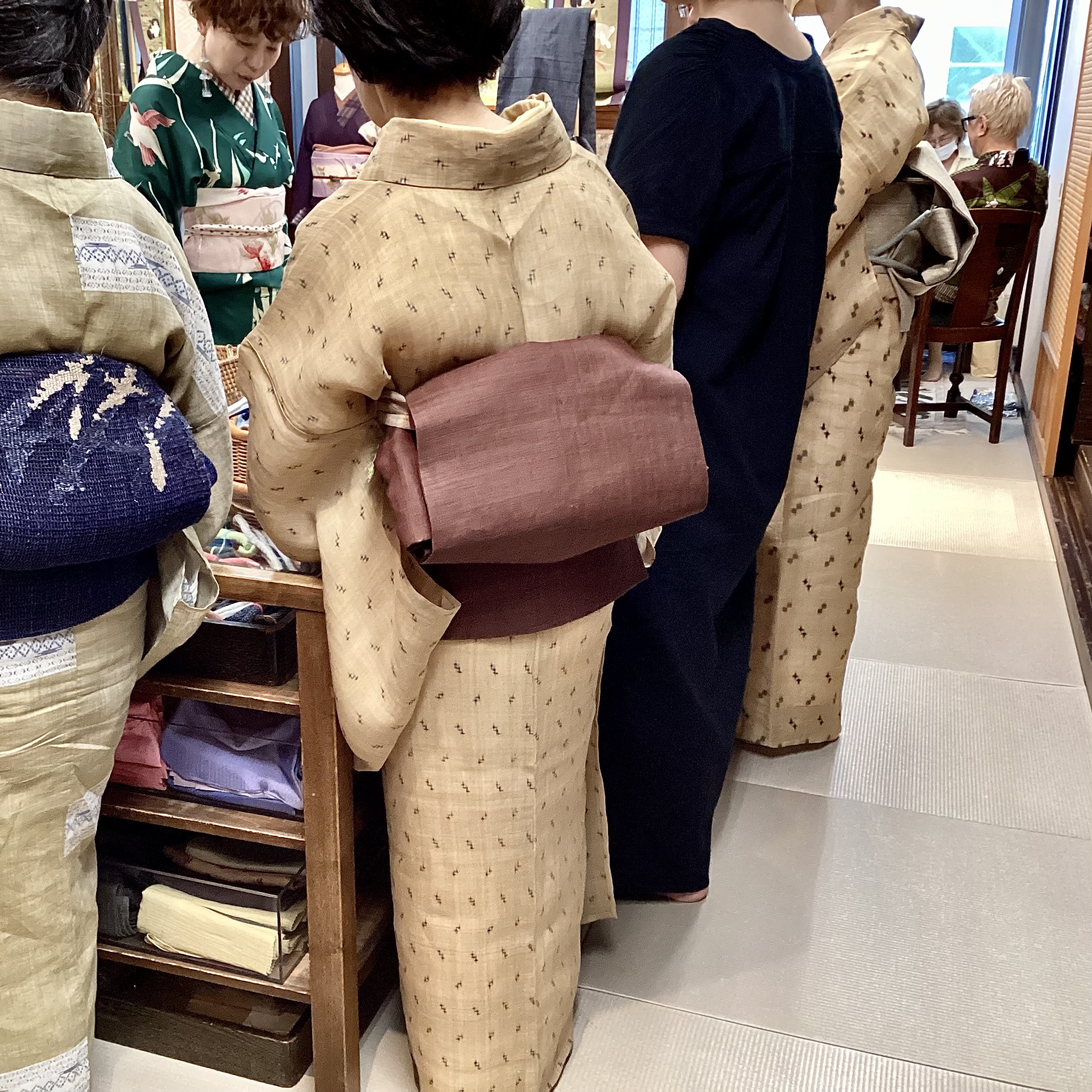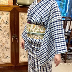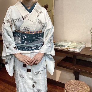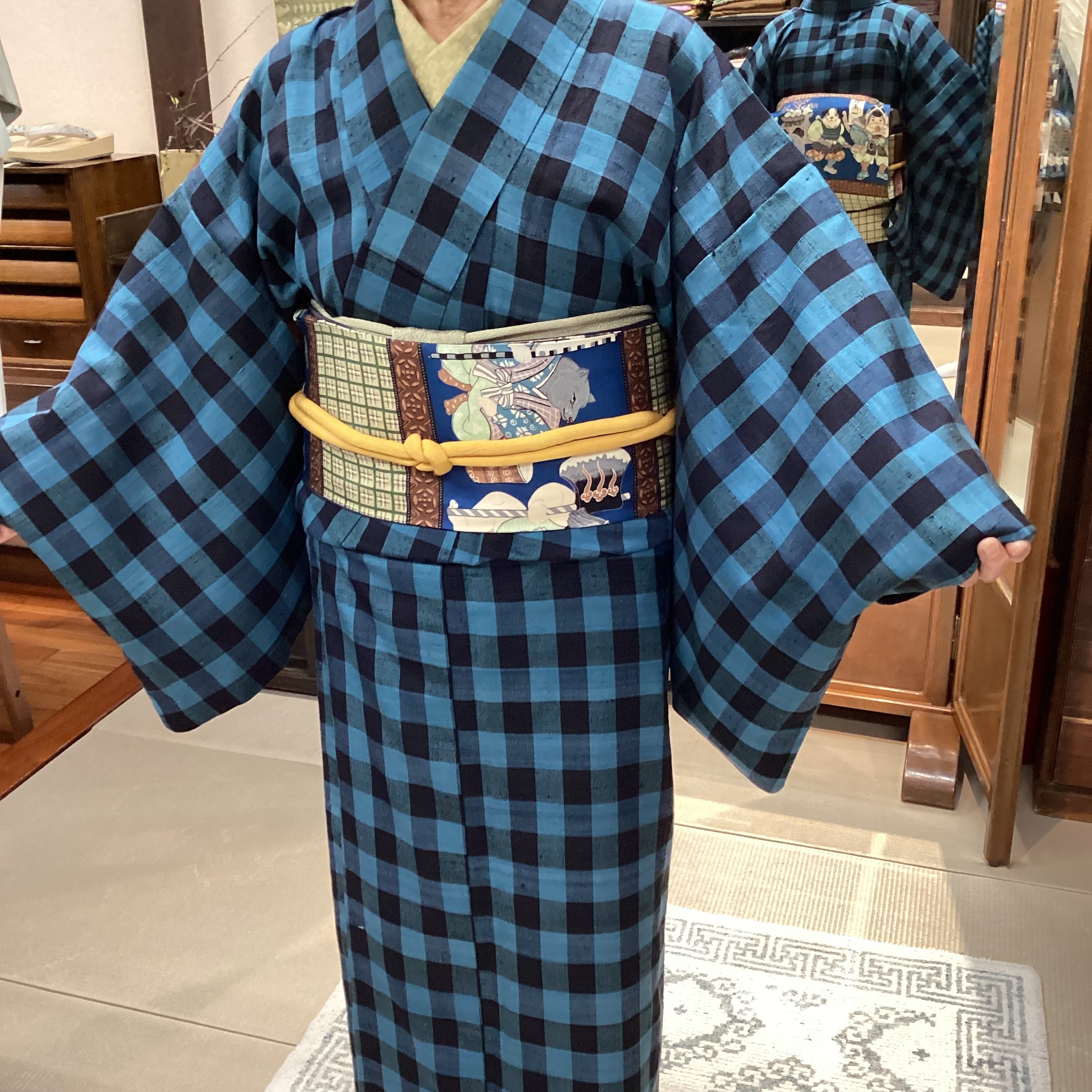 この日はやっと涼しくなり、灯屋2秋・冬のおすすめの杢調結城縮でお越しのお客様。