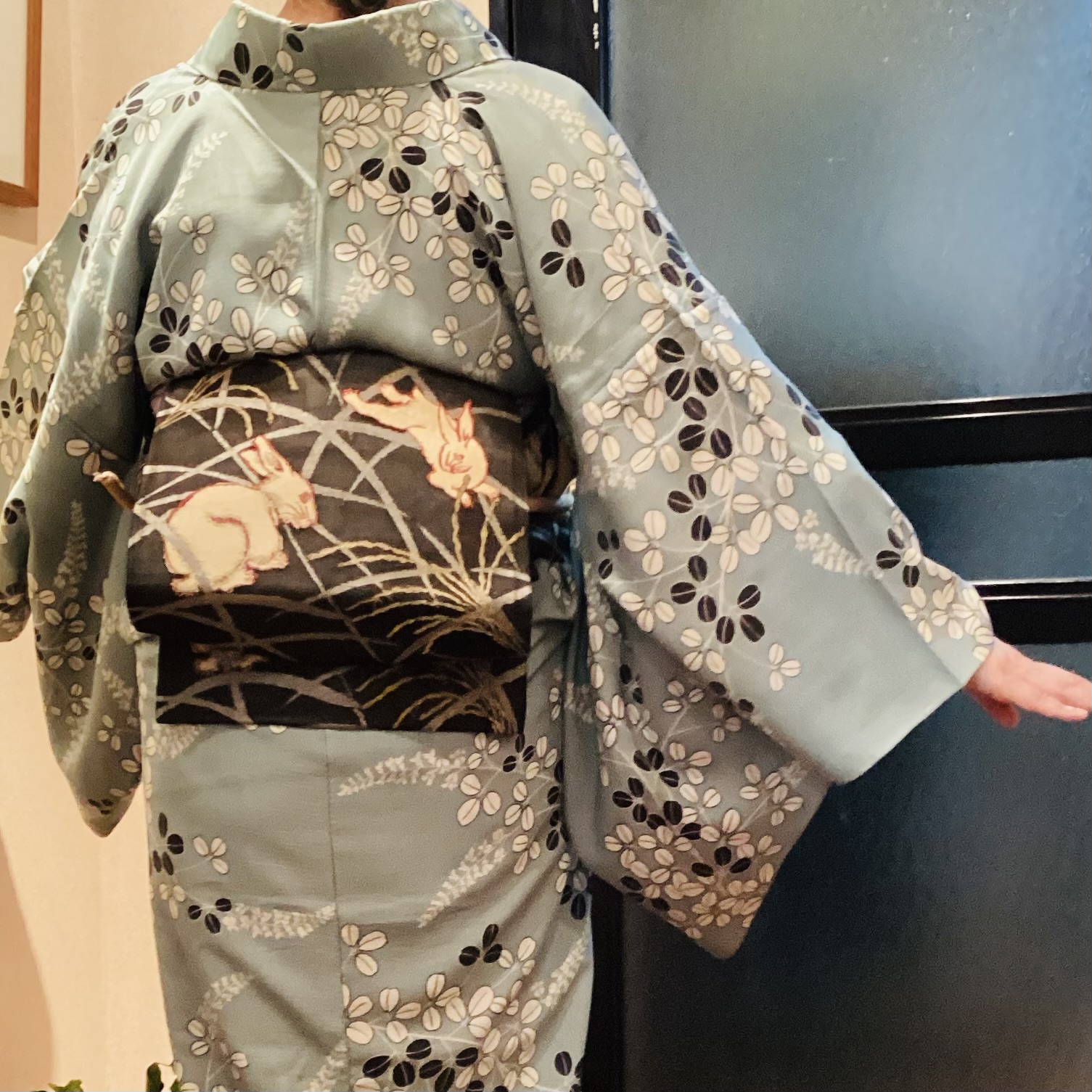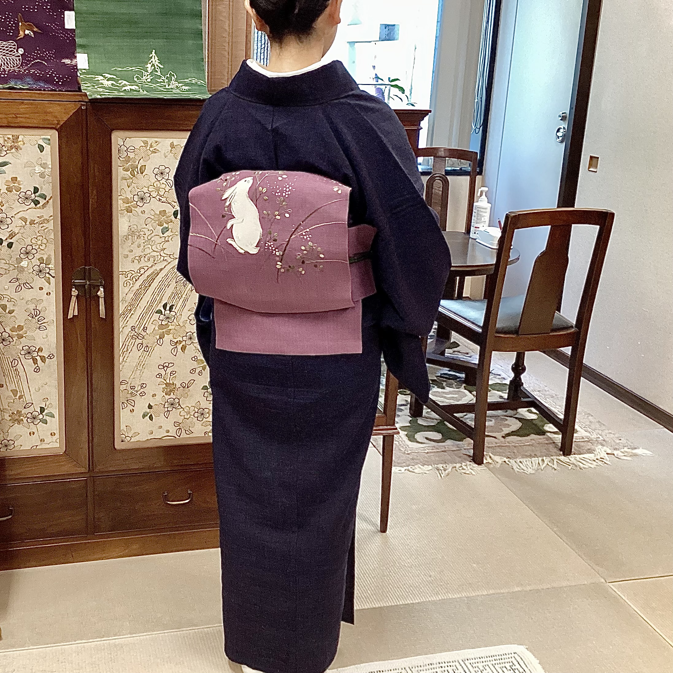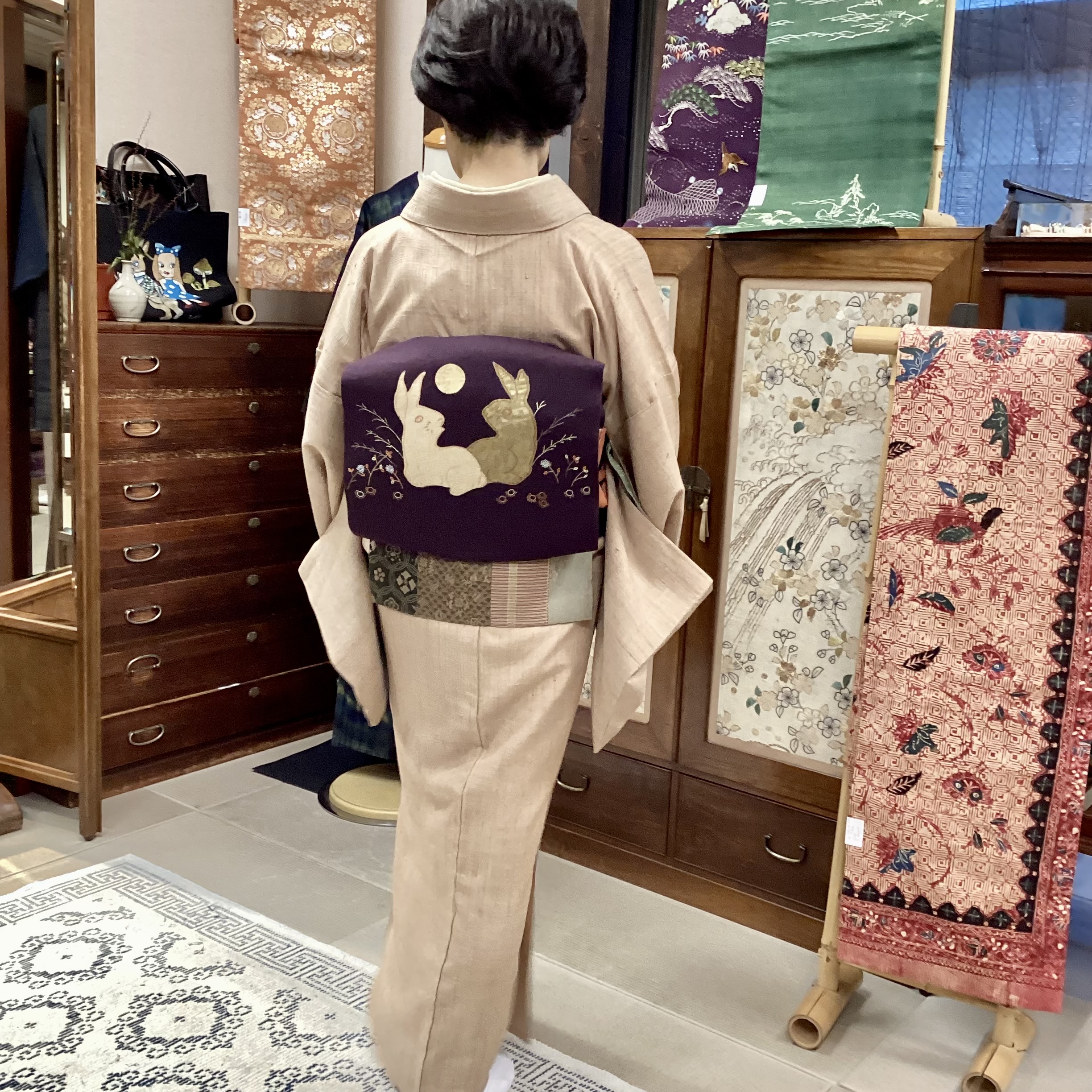 うさぎのモチーフの帯は今も昔も昔も大人気。本日は秋のうさぎモチーフの帯を素敵に着こなされたお客様のご紹介です。