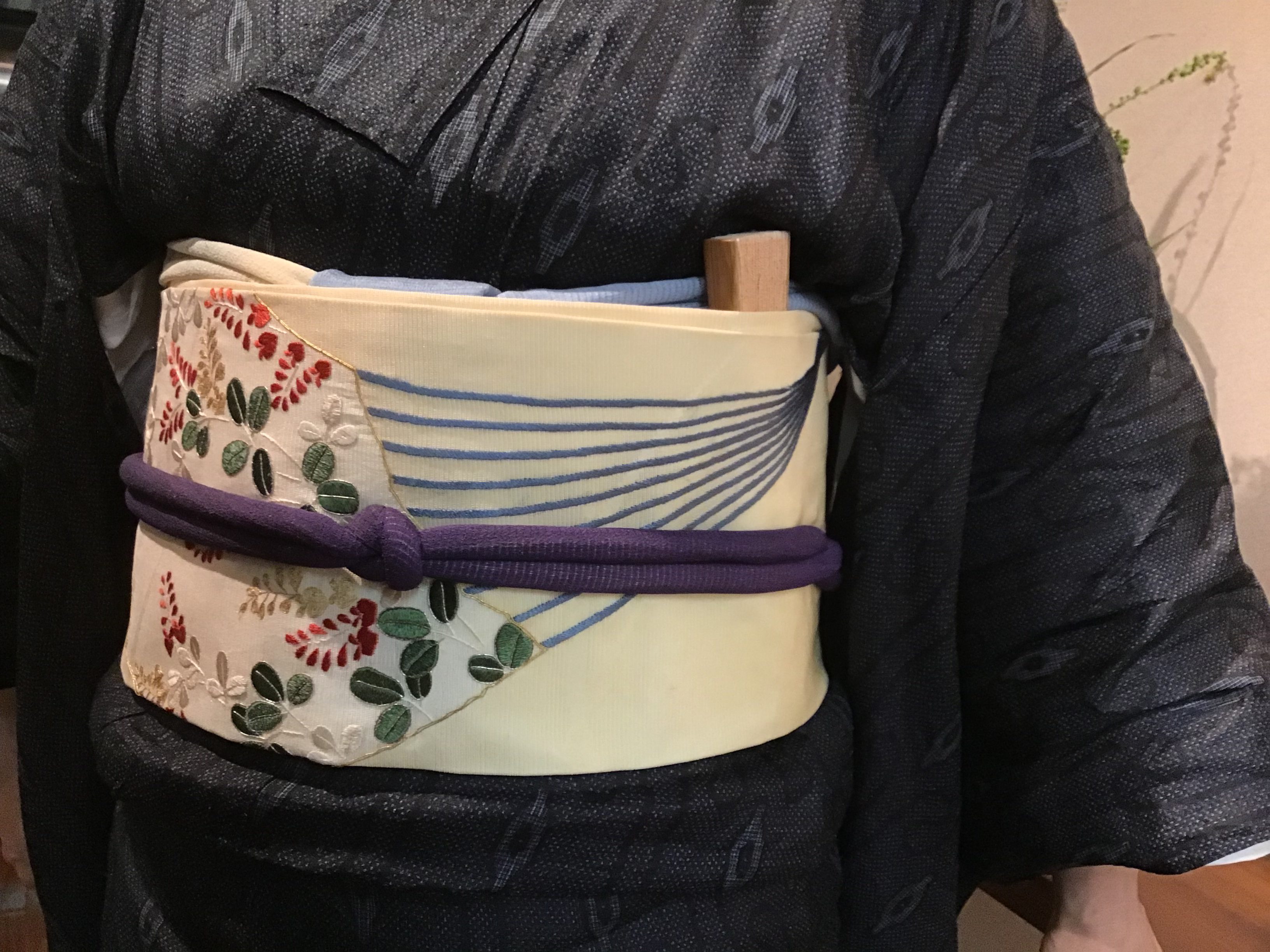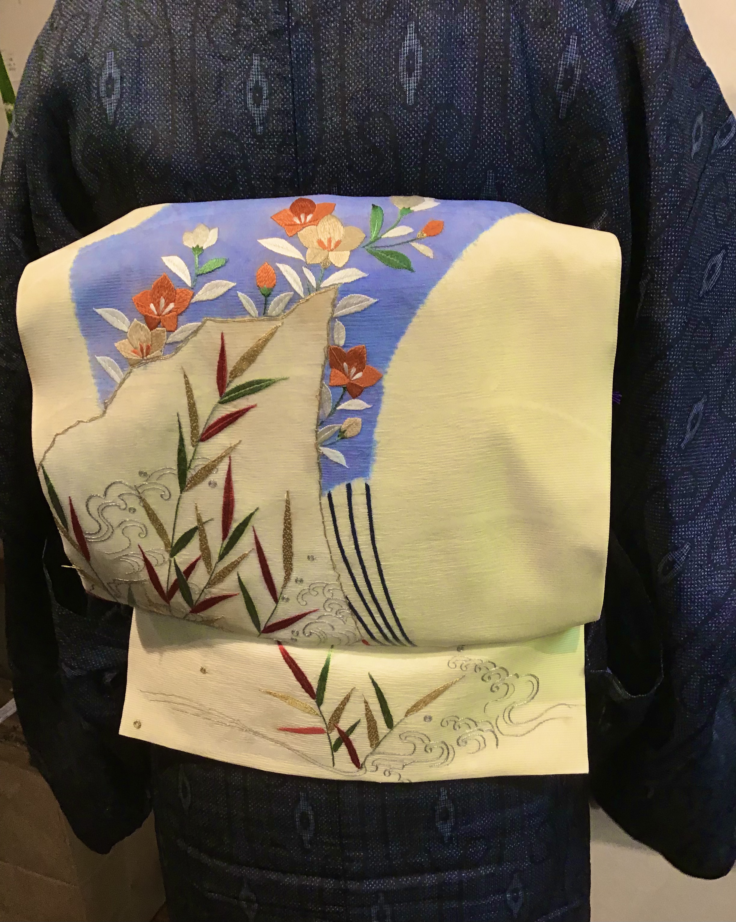 ご来店お客様の装い~葦と萩の葉が、秋を呼ぶ素敵な刺繍の帯。