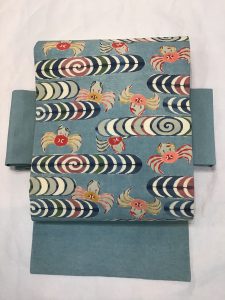 19-3-14水紋に遊ぶ蟹本紅型名古屋帯100,000+税