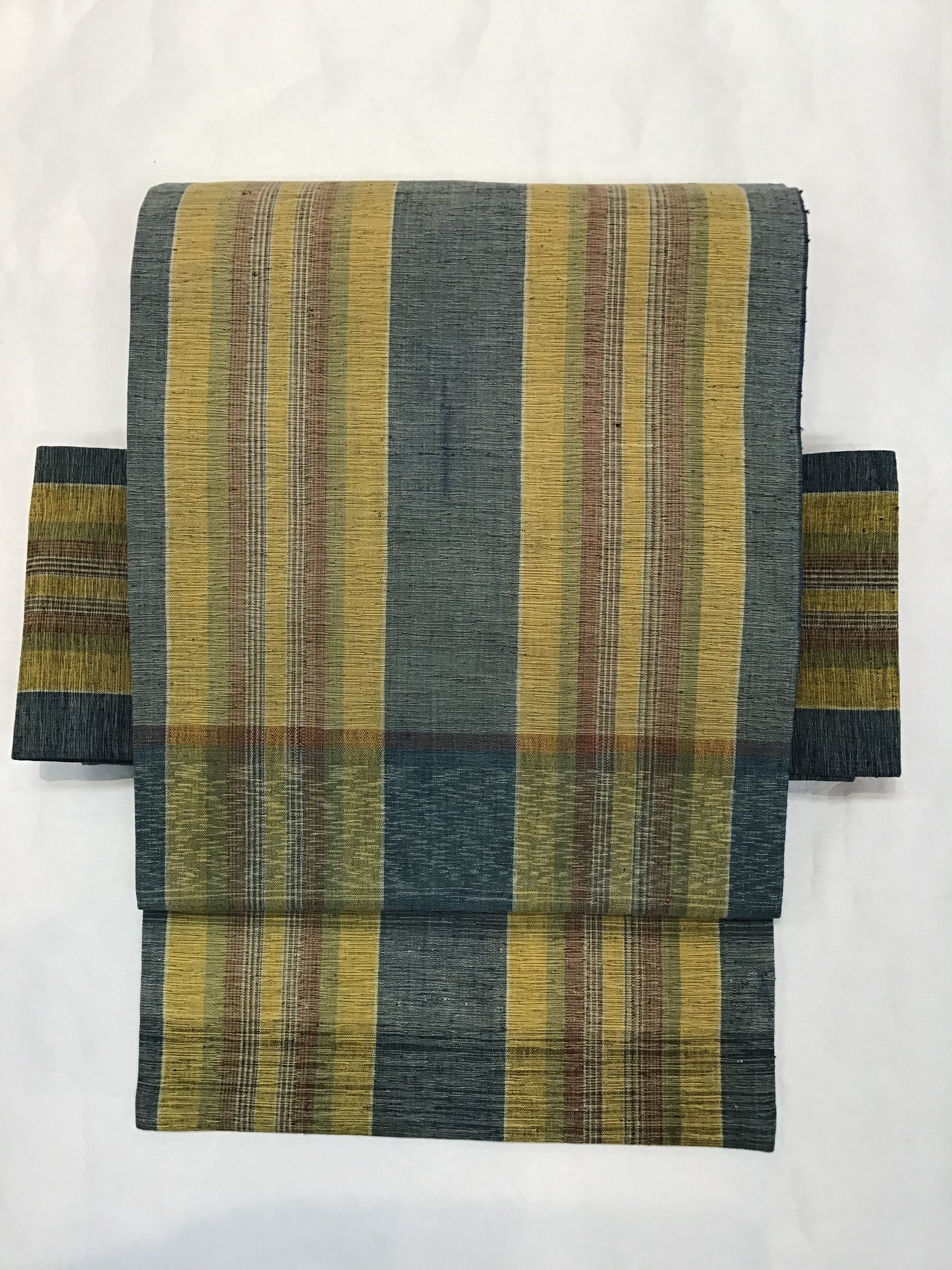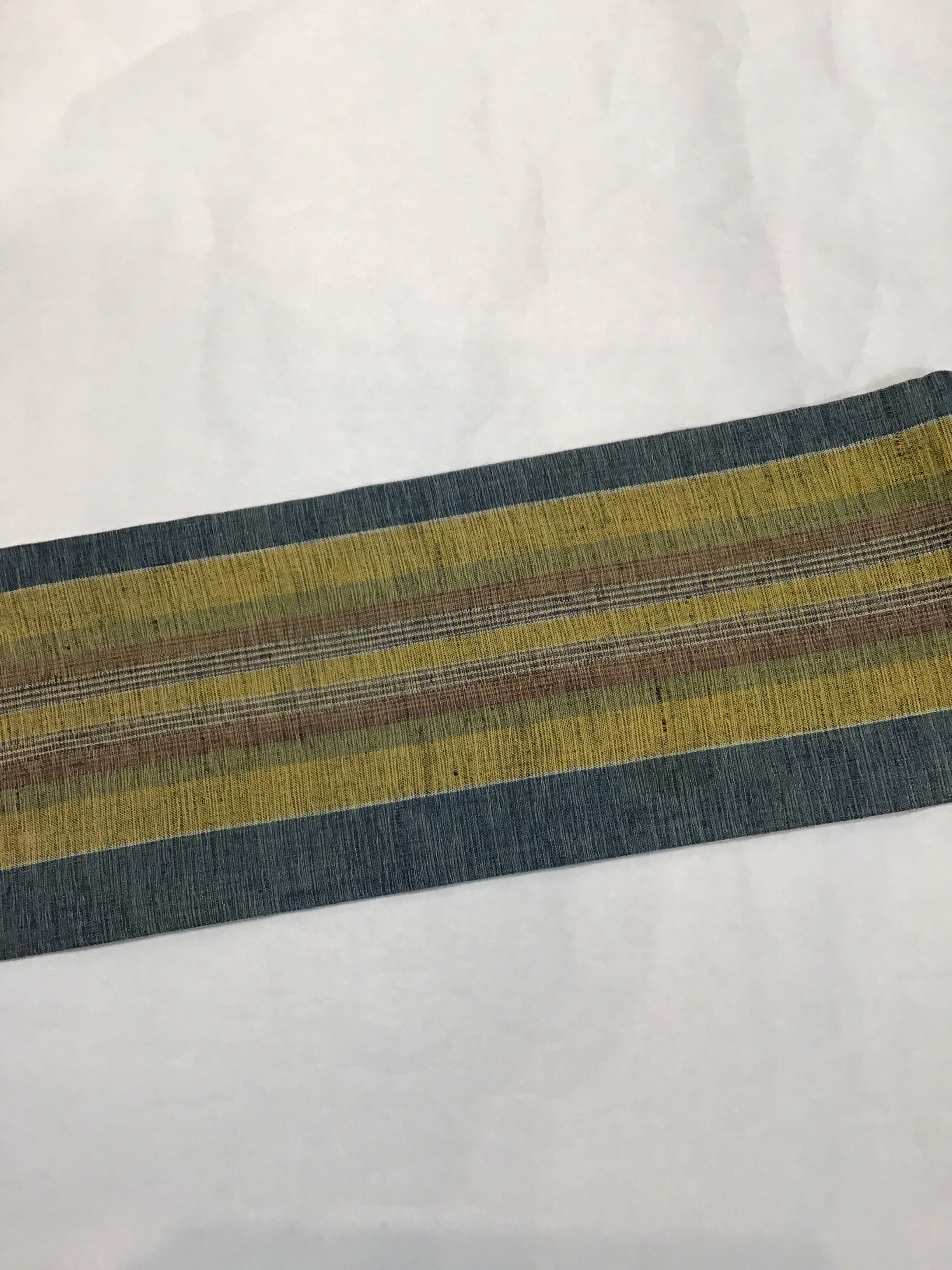 藍、茶、黄色格子の木綿名古屋帯30,000+税