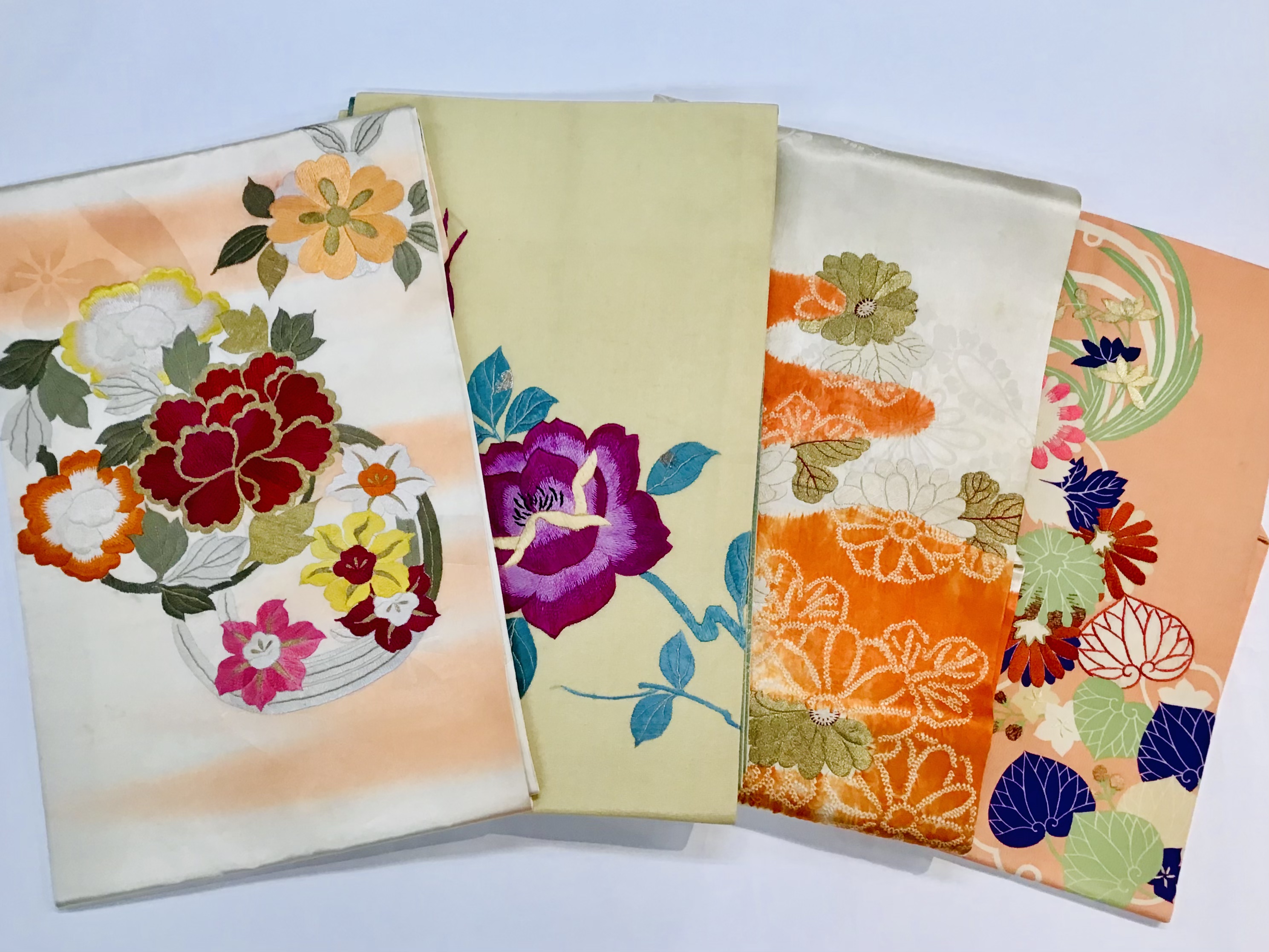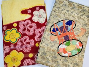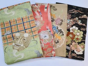帯は丸帯の素材で、名古屋帯になっているものから、3本選びました。