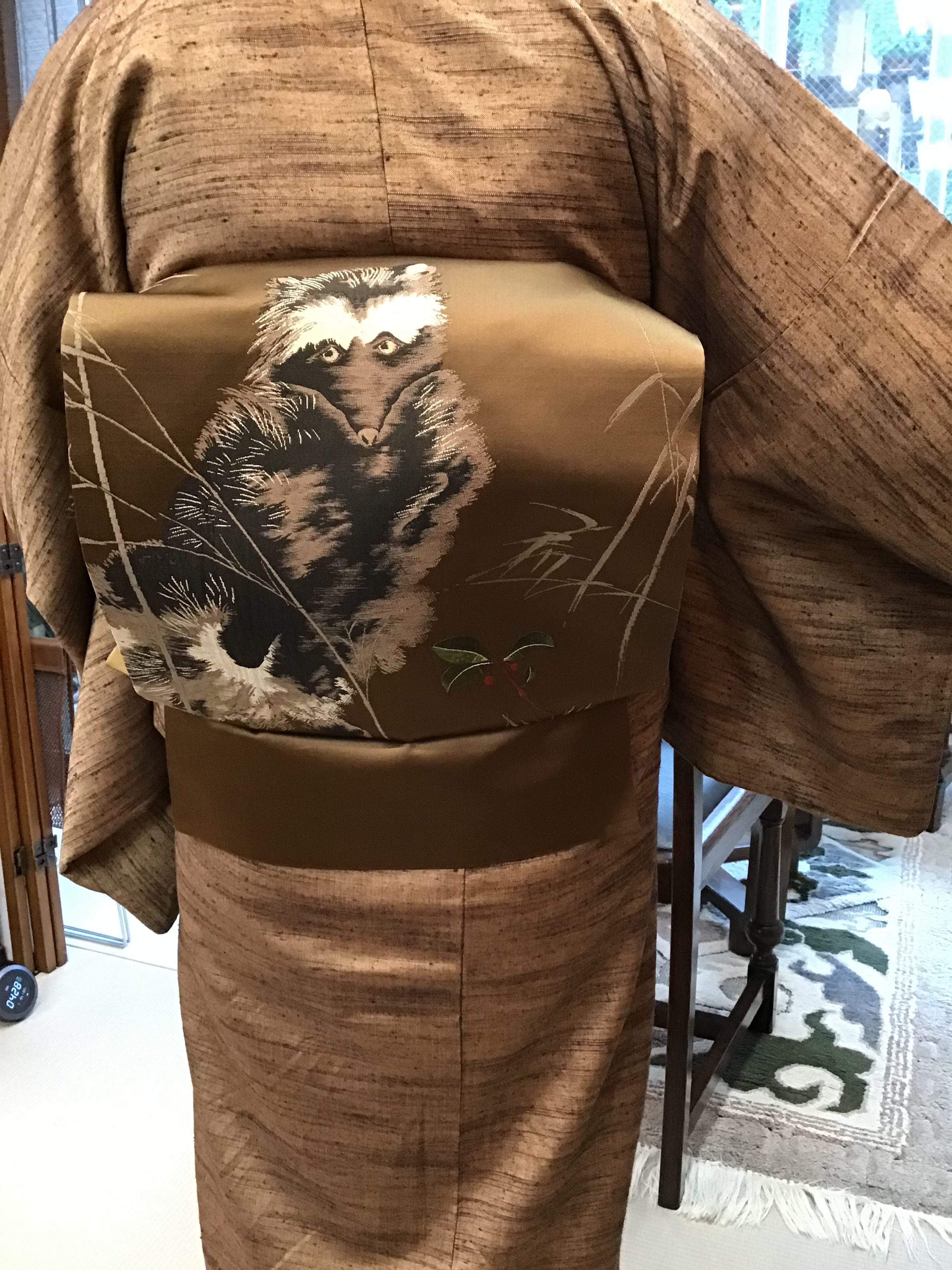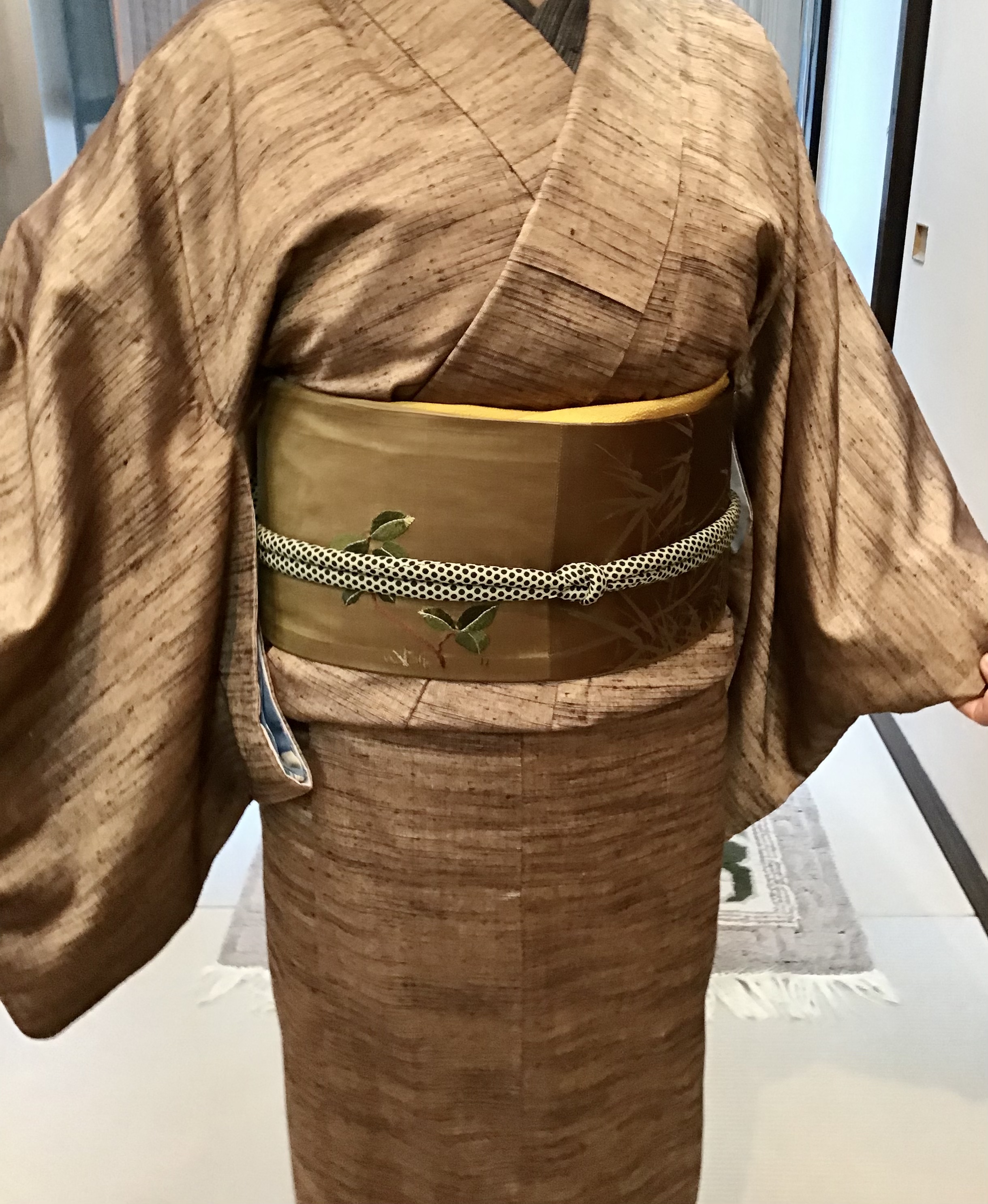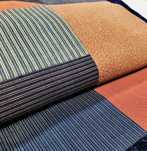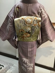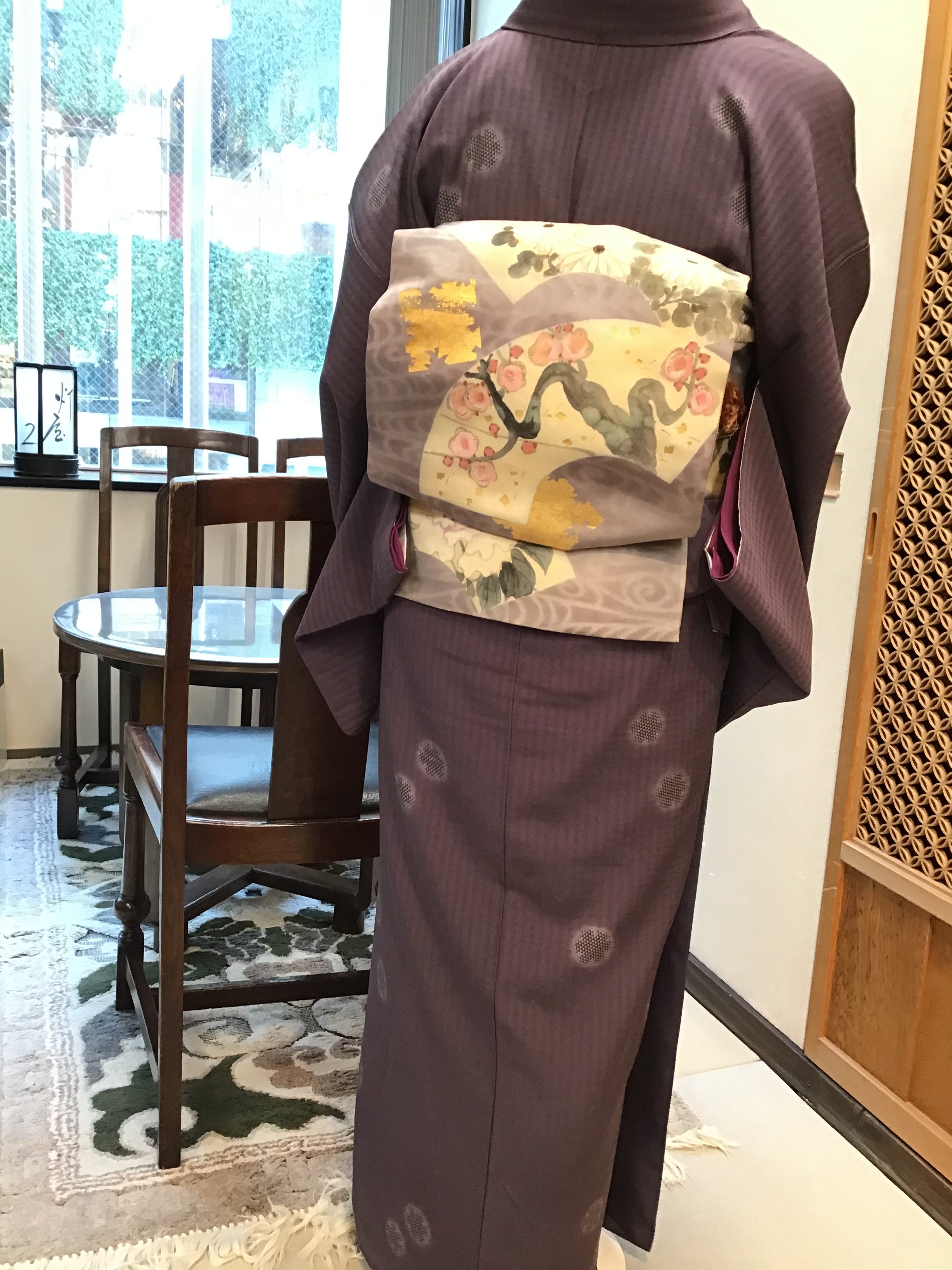 横段に梅染め名古屋帯