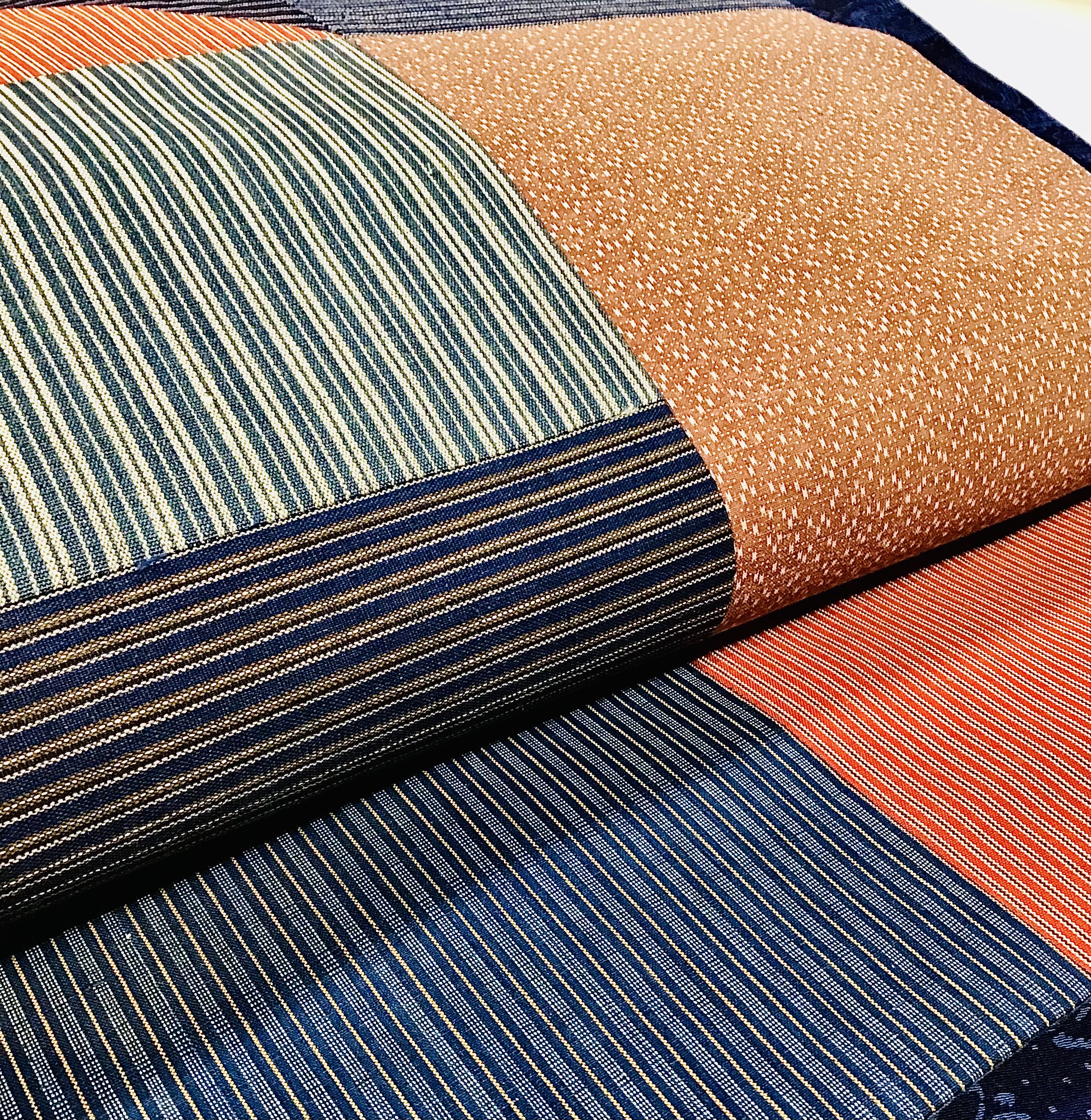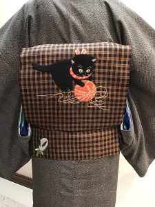 横段の色の取り合わせも、ほっこりするような梅の形も遊び心があって愛嬌のある帯です。