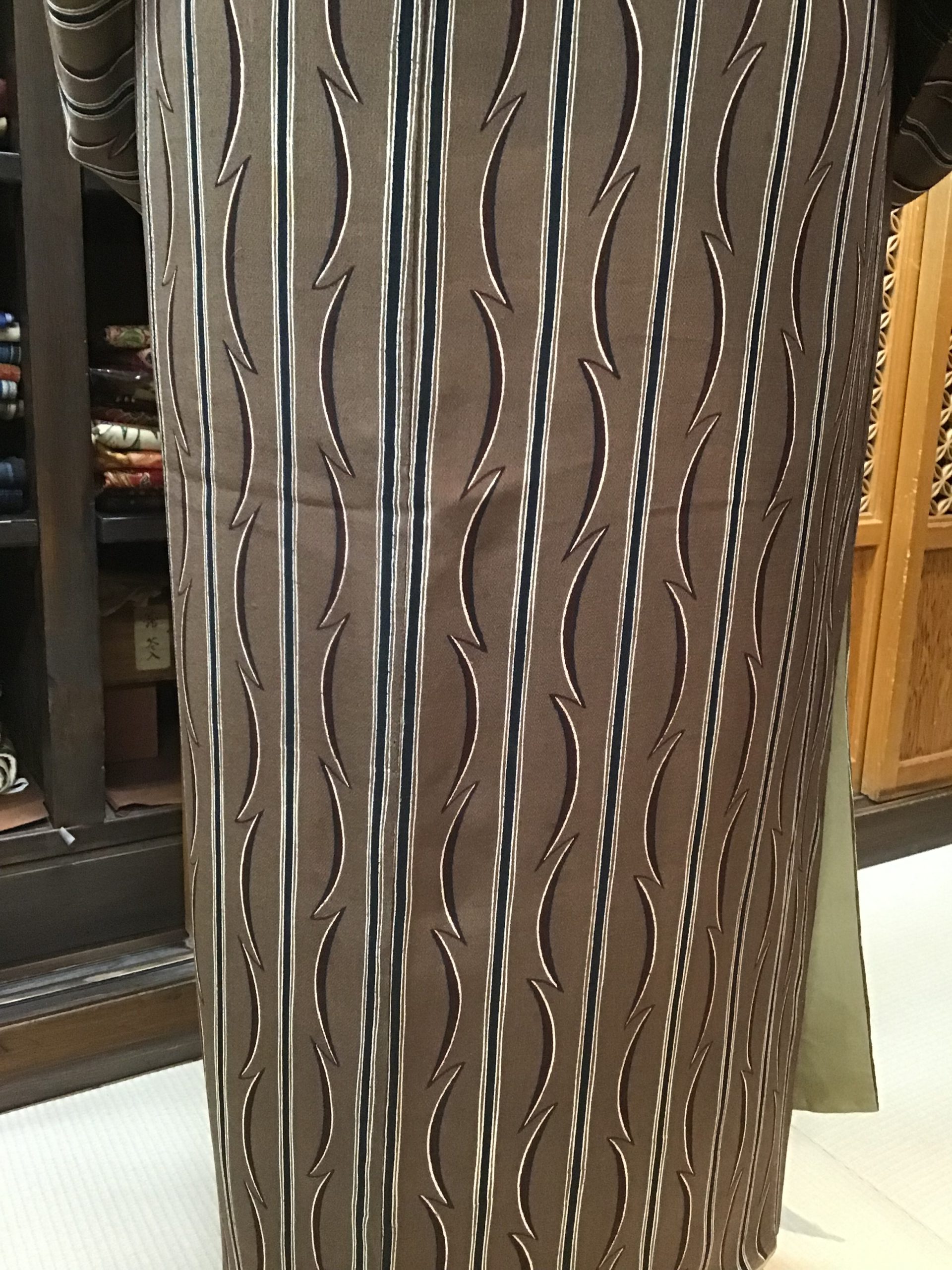 この羽織は、裄1尺8寸(68.4cm)あり、日ごろ、裄が足りなくて、素敵な羽織をあきらめている方に朗報です。身丈も2尺8寸(106.5cm)と、長さも充分です。