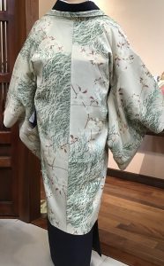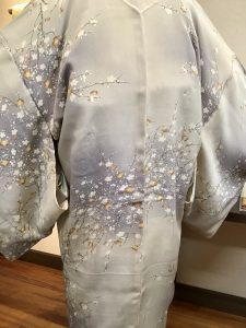 春の霞に包まれたような小さな梅の花が、たくさん咲いてる羽織です。