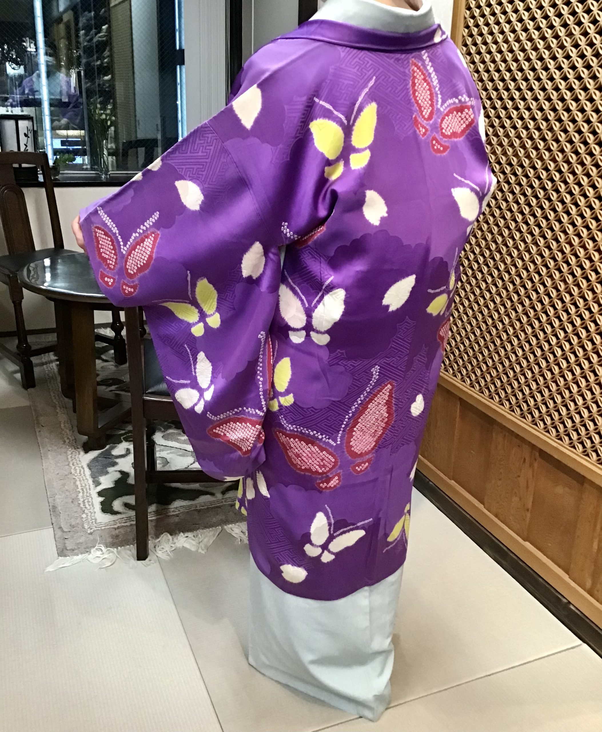 草花や蝶、鳥たちのよろこぶ声が、きこえてきそうな華やかな羽織です。