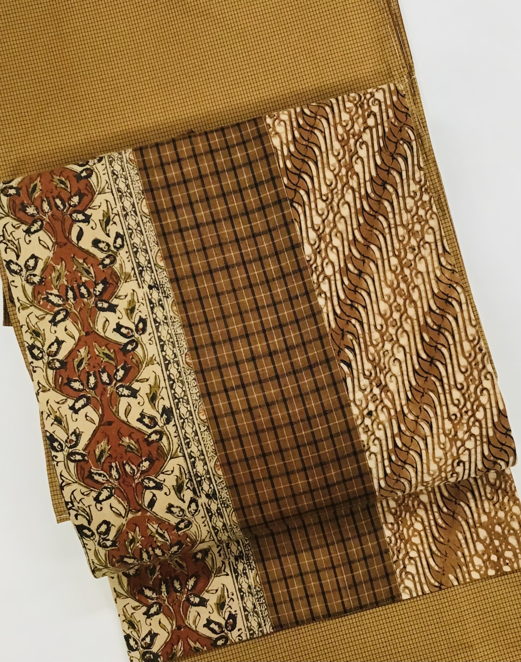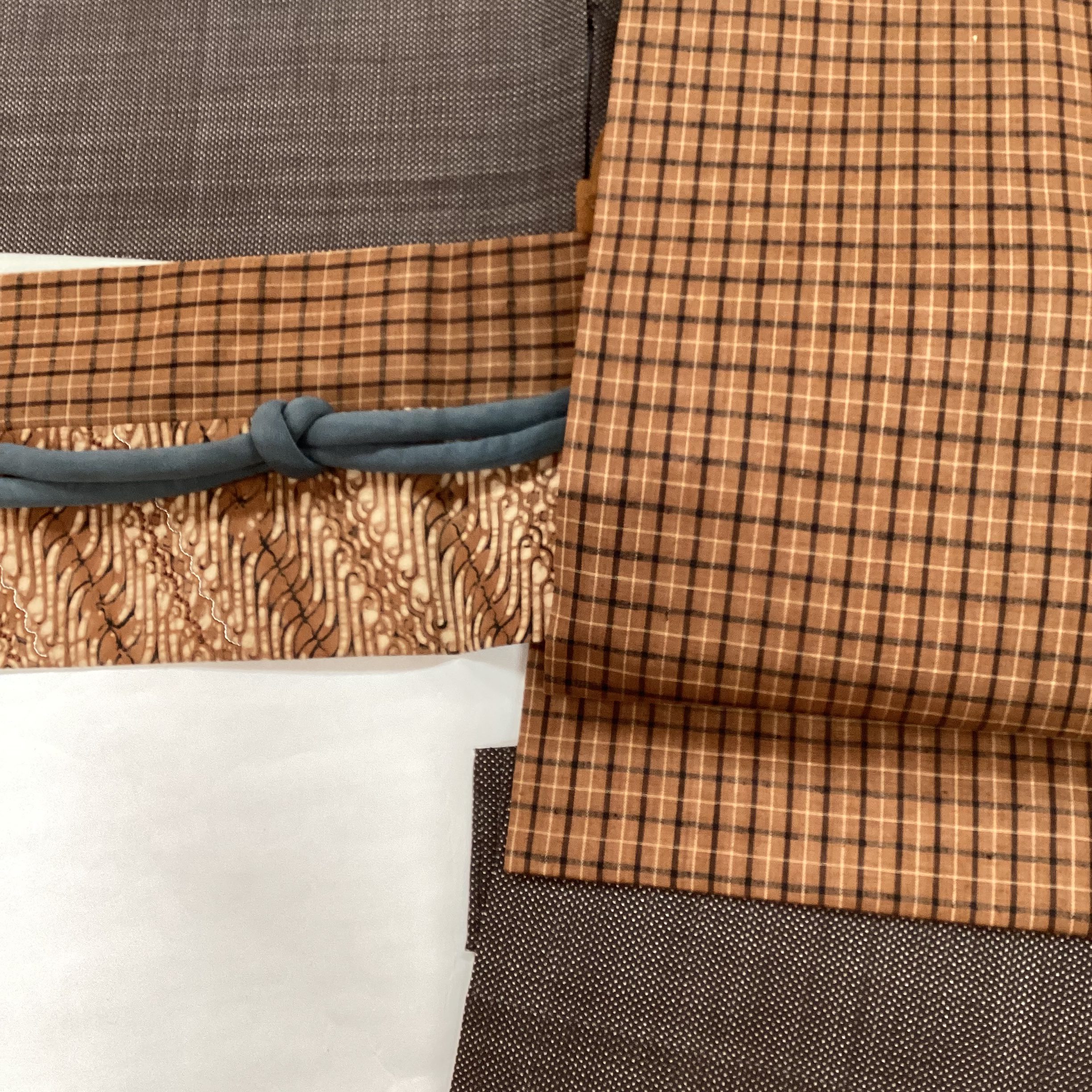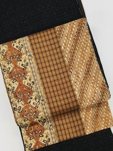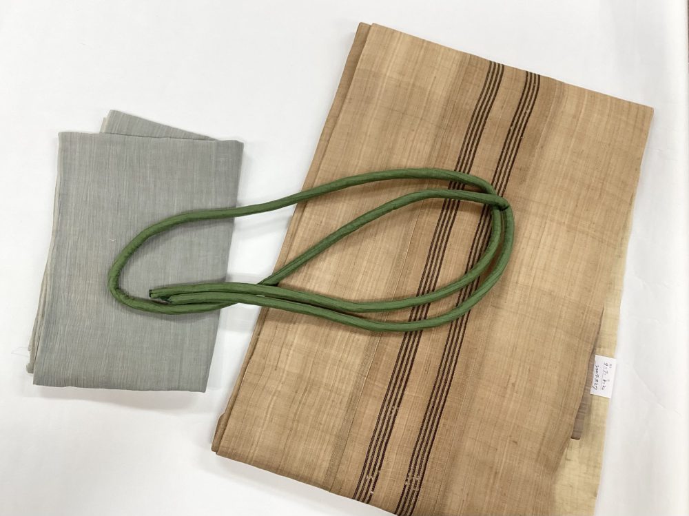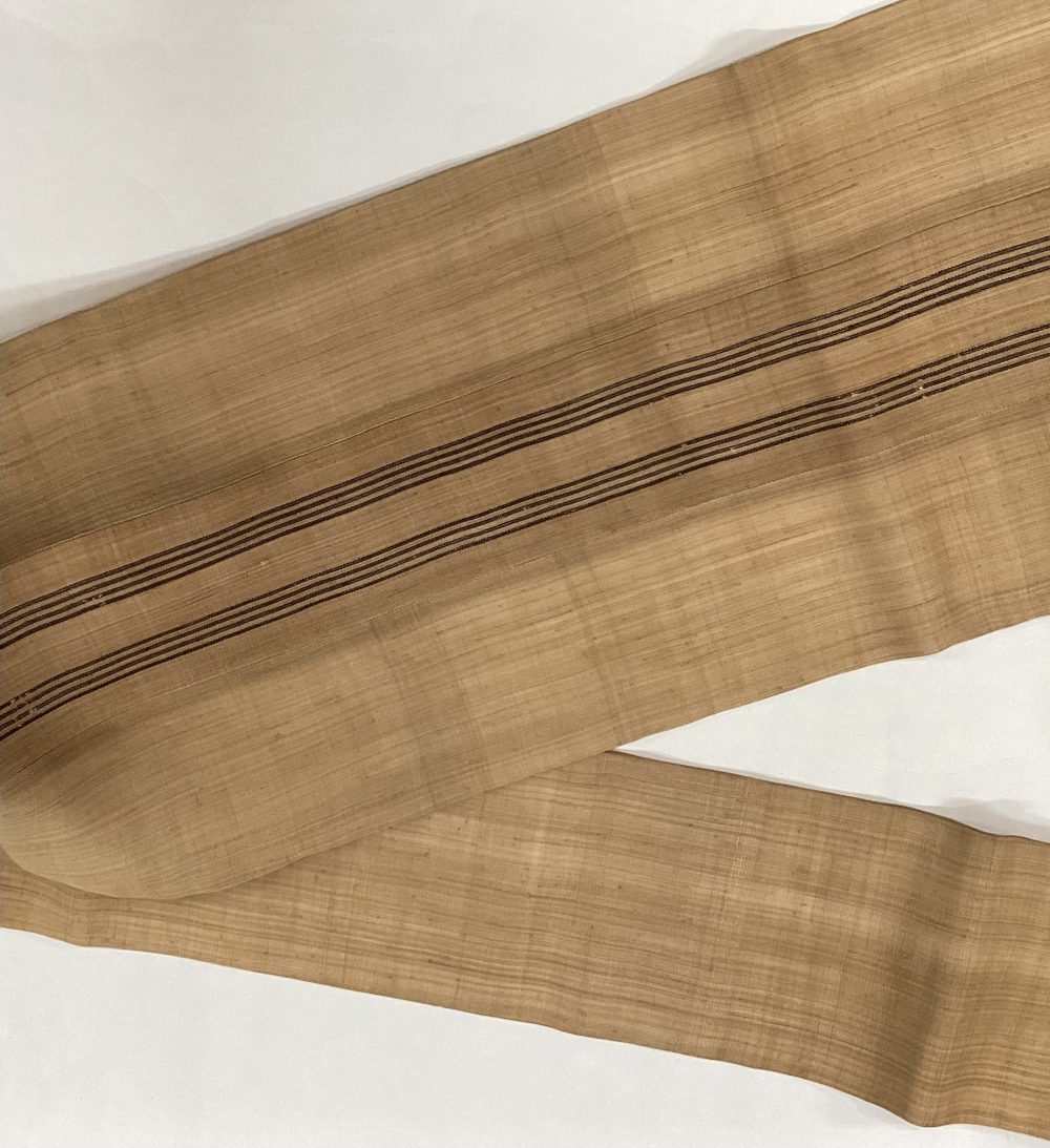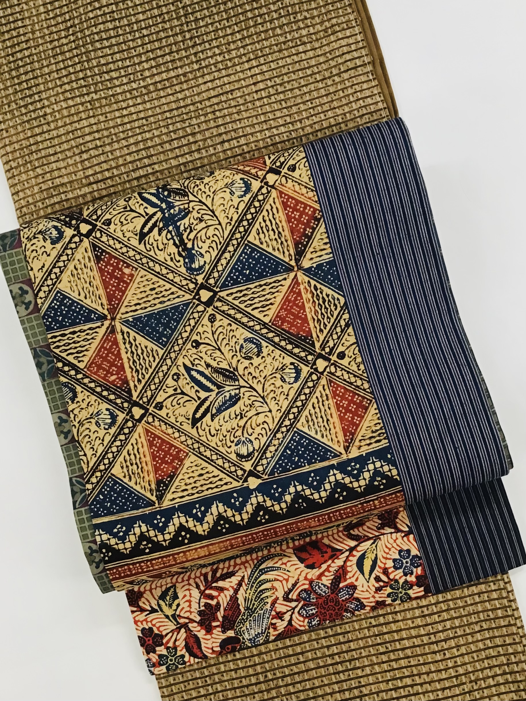四本の縞と、無地の芭蕉布を継いでいますが、帯の自然の色合いでできる縞と、縫い目が溶け込んでいて、特に継いでいるとは感じません。