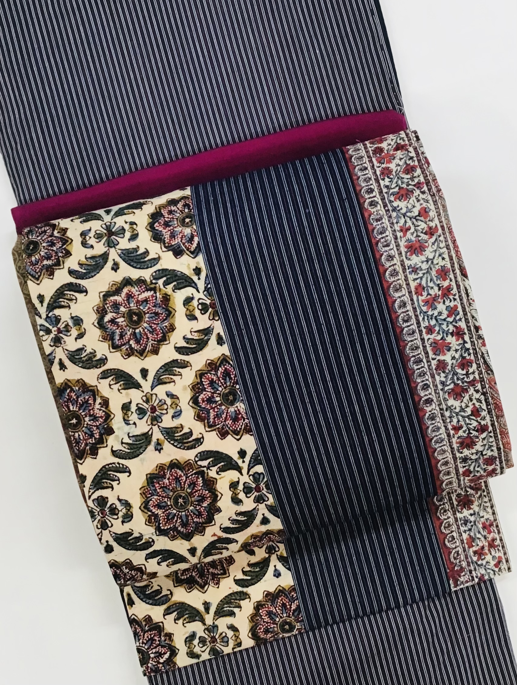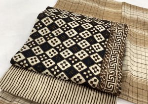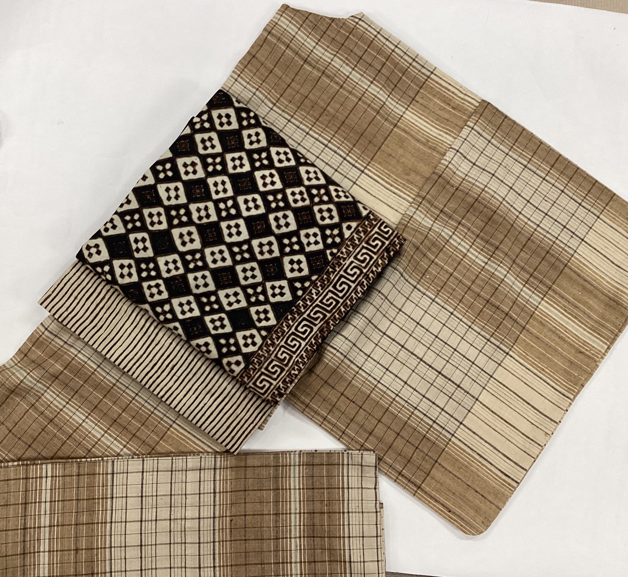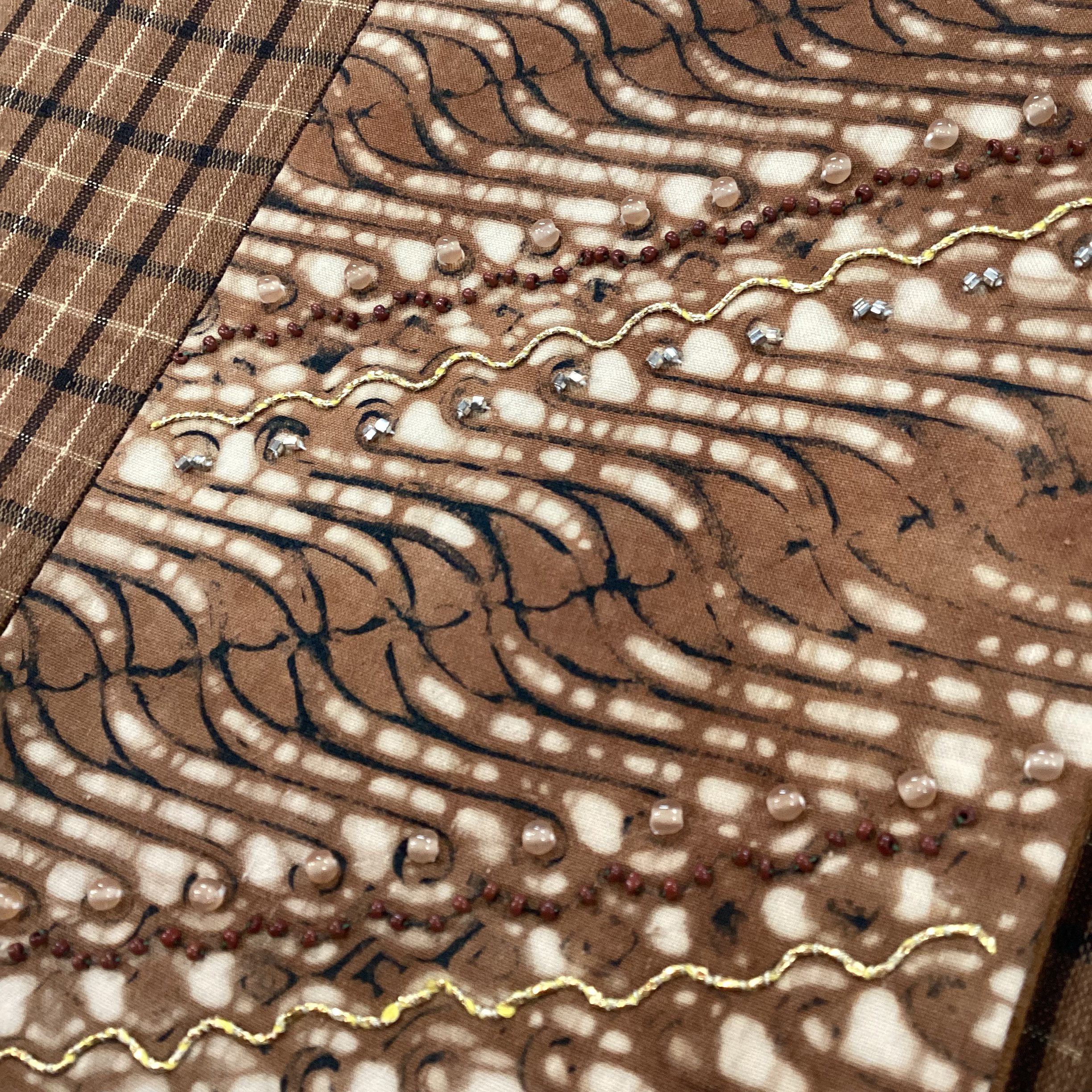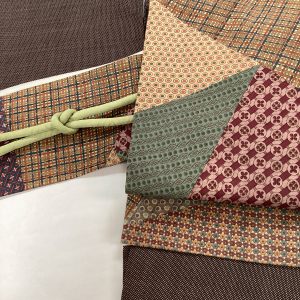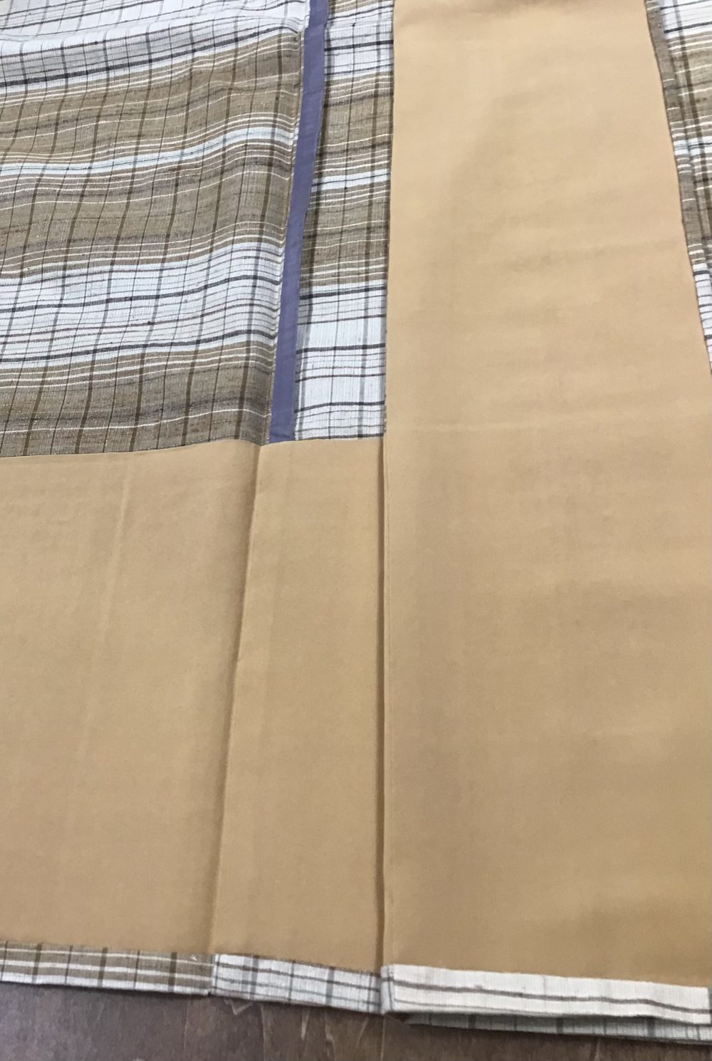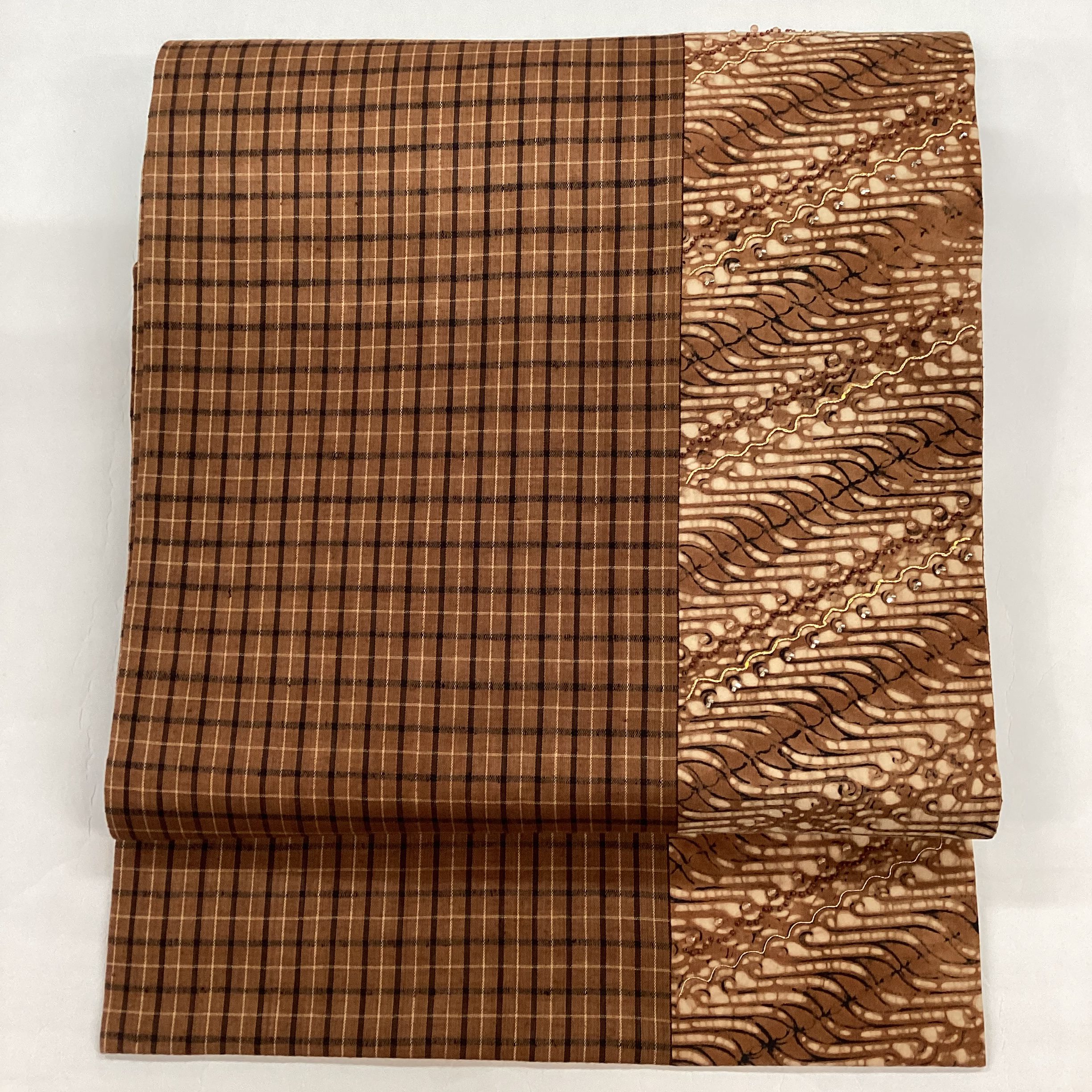 四本の縞と、無地の芭蕉布を継いでいますが、帯の自然の色合いでできる縞と、縫い目が溶け込んでいて、特に継いでいるとは感じません。